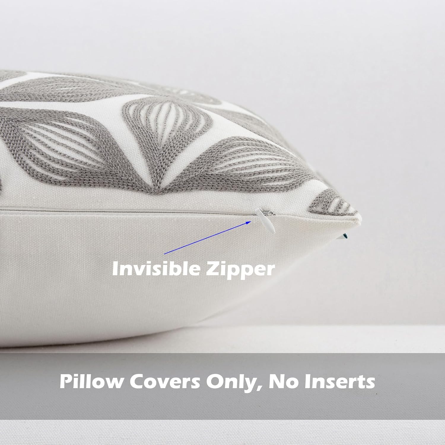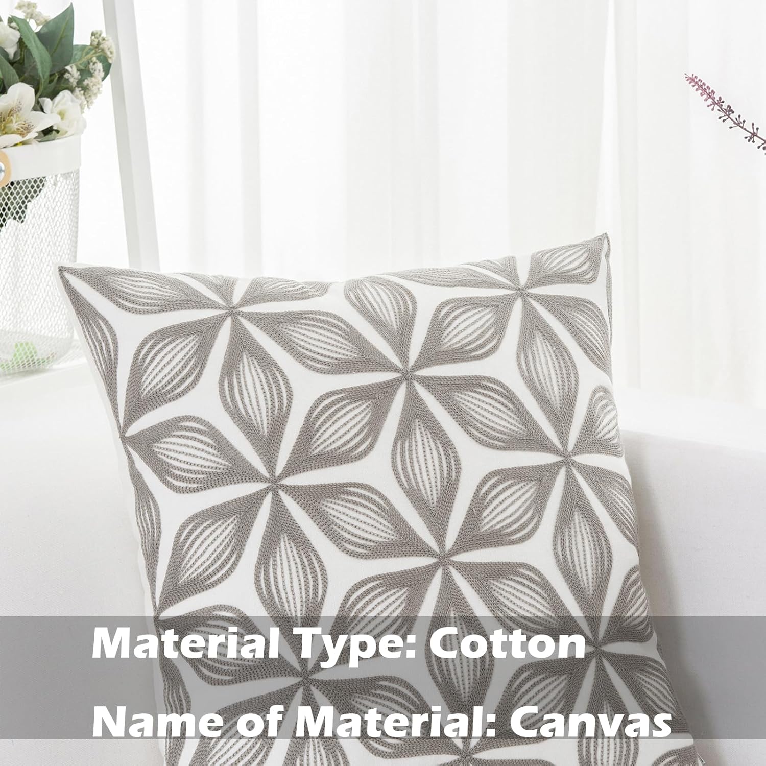 - Size & Material: This 18 x 18 inch (18 by 18) square throw pillow cover is made of 100% thick cotton canvas for durability. The crisp white fabric is soft yet sturdy, featuring beautiful single-sided embroidery for an elegant touch