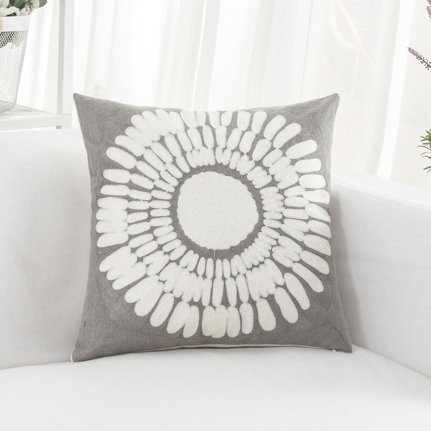 - Size & Material: This 18 x 18 inch (18 by 18) square throw pillow cover is made of 100% thick cotton canvas for durability. The crisp white fabric is soft yet sturdy, featuring beautiful single-sided embroidery for an elegant touch