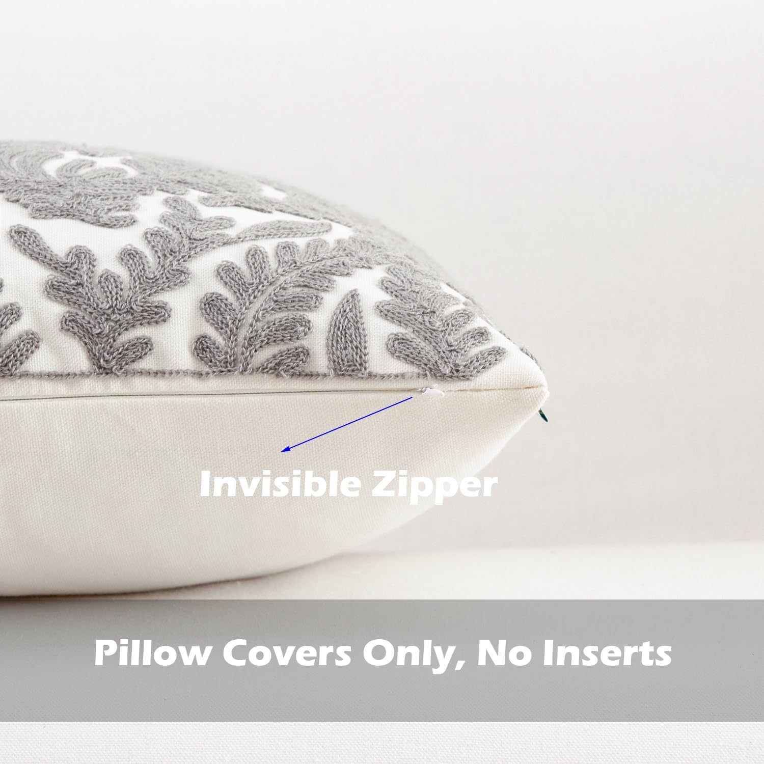 - Size & Material: This 18 x 18 inch (18 by 18) square throw pillow cover is made of 100% thick cotton canvas for durability. The crisp white fabric is soft yet sturdy, featuring beautiful single-sided embroidery for an elegant touch