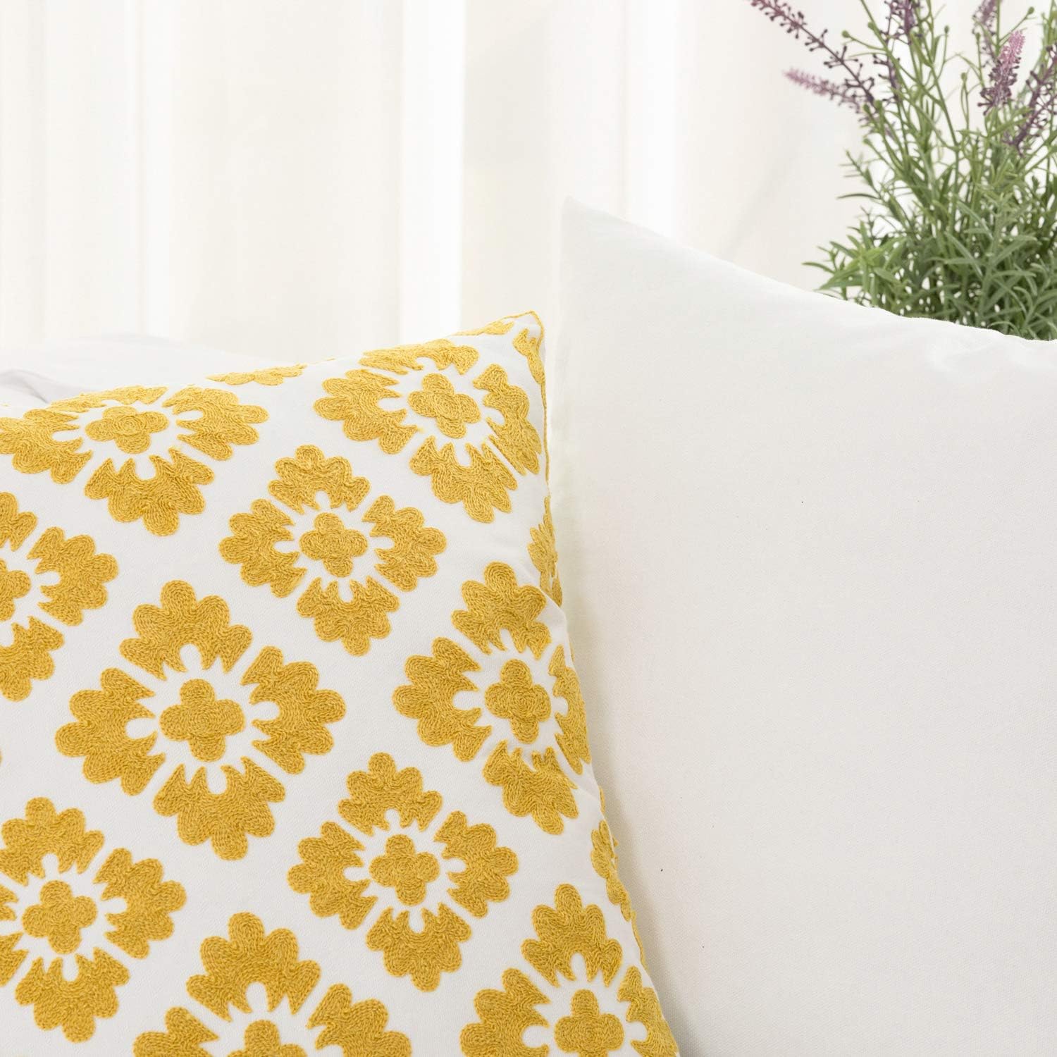 - Size & Material: This 18 x 18 inch (18 by 18) square throw pillow cover is made of 100% thick cotton canvas for durability. The crisp white fabric is soft yet sturdy, featuring beautiful single-sided embroidery for an elegant touch