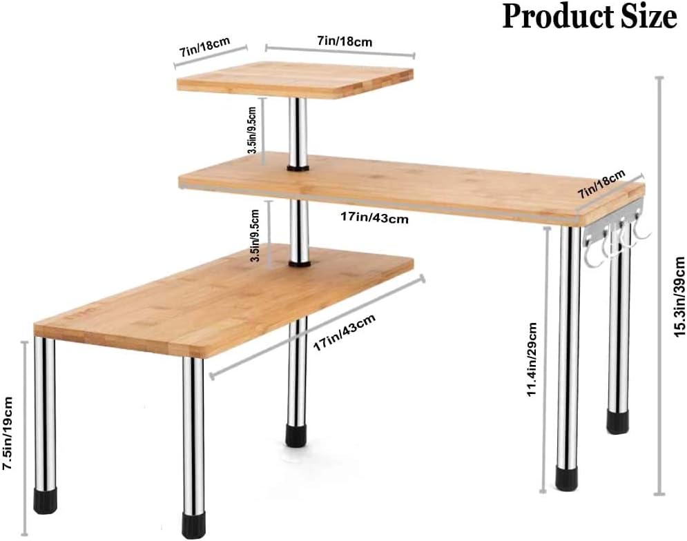 HYNAWIN Corner Shelf Bamboo & Metal Storage Spice Rack, 3 Tier Desk Bookshelf Display Shelves Space Saving Organizer, Adjustable Rack for Kitchen, Bed Room, Office-Best Home Décor (Upgraded Shelf)