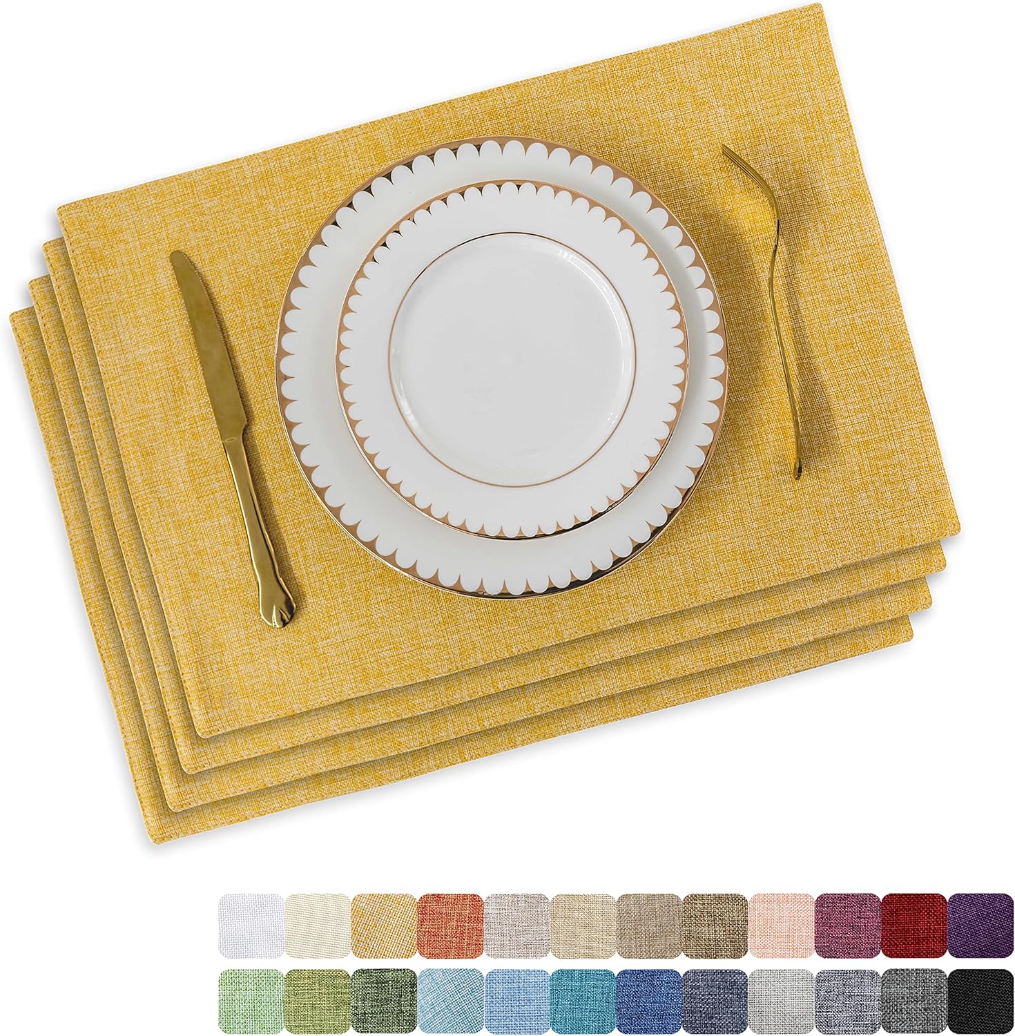 Home Brilliant Cloth Placemats Set of 4 Linen Placemat Washable Heat Resistant Dining Table Place Mats for Kitchen Table Holiday Dinner Fall Decoration, Yellow