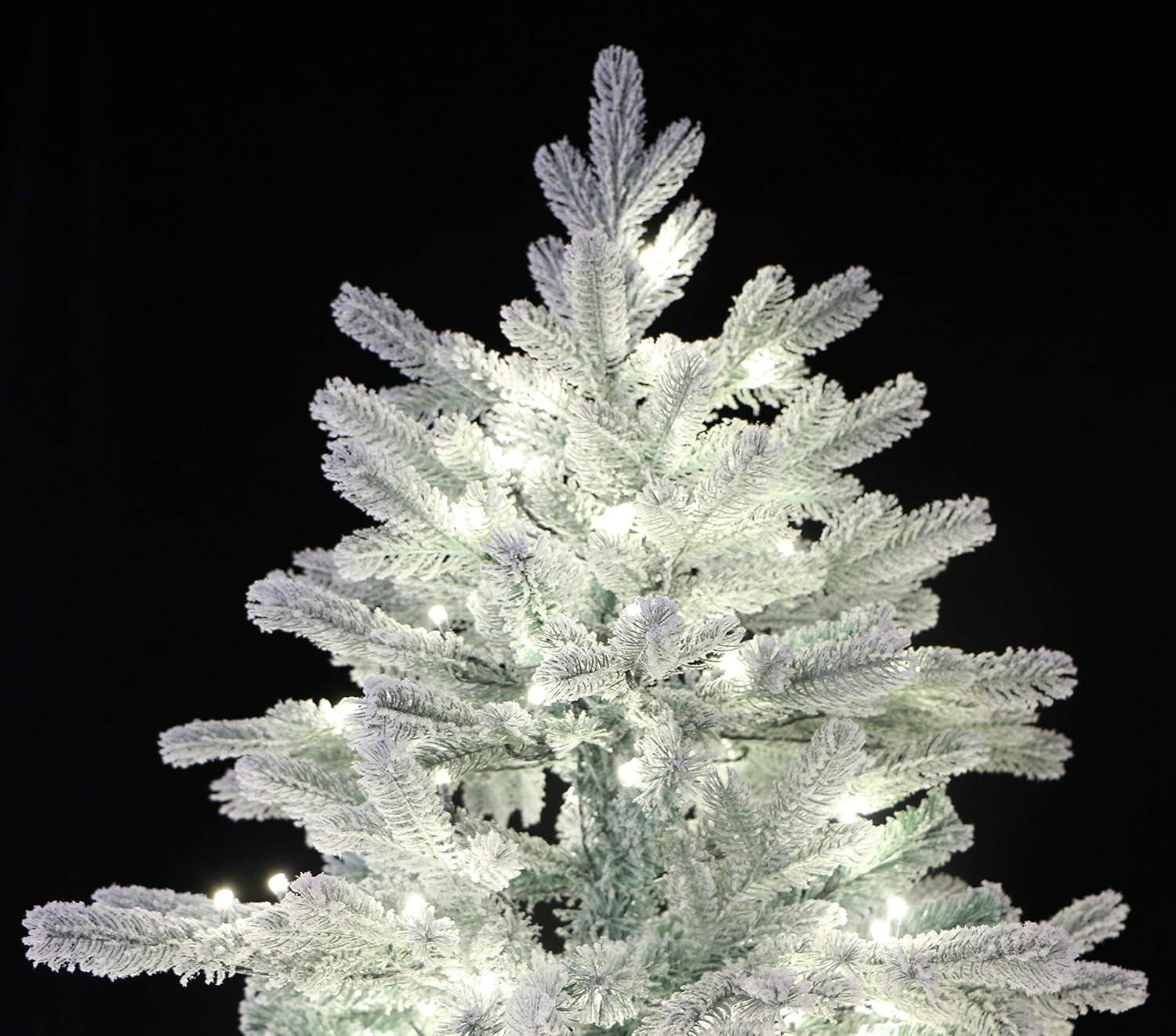 - Eco-friendly Material, Mix of Icy green PE tips towards outside for realism and classic PVC underneath for the fullness. Flocked with nontoxic artificial snow, creating a wonderful snowy Christmas spirit.