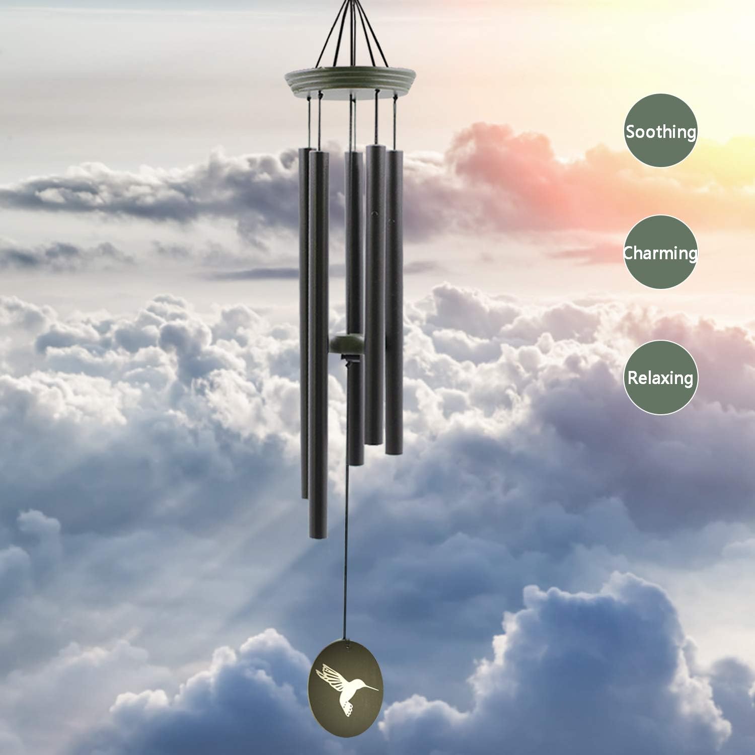 - 🌳 Unique Hummingbird Design: Our outdoor wind chimes feature a 33-inch height from hanging hook to bottom wind catcher, with a 5-inch wide suspension platform. The hard aluminum tubes are coated in black matte color, and the longest tube measures 14.5 inches. The catcher is printed with a hummingbird design, adding a touch of elegance to your garden, yard, or patio.