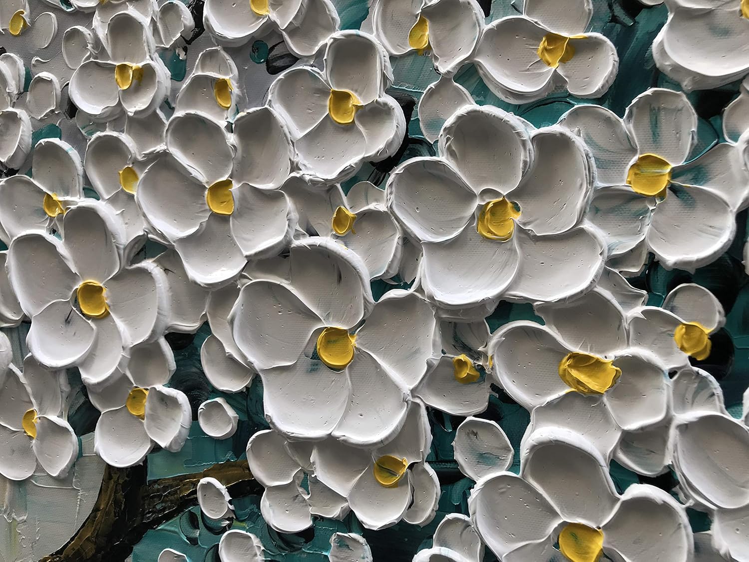 3D Abstract Art Oil Painting White Flower Tree Painting Textured Palette Knife White Flower Painting Modern Canvas Wall Art Home Decoration Home Painting (24x48 inches)