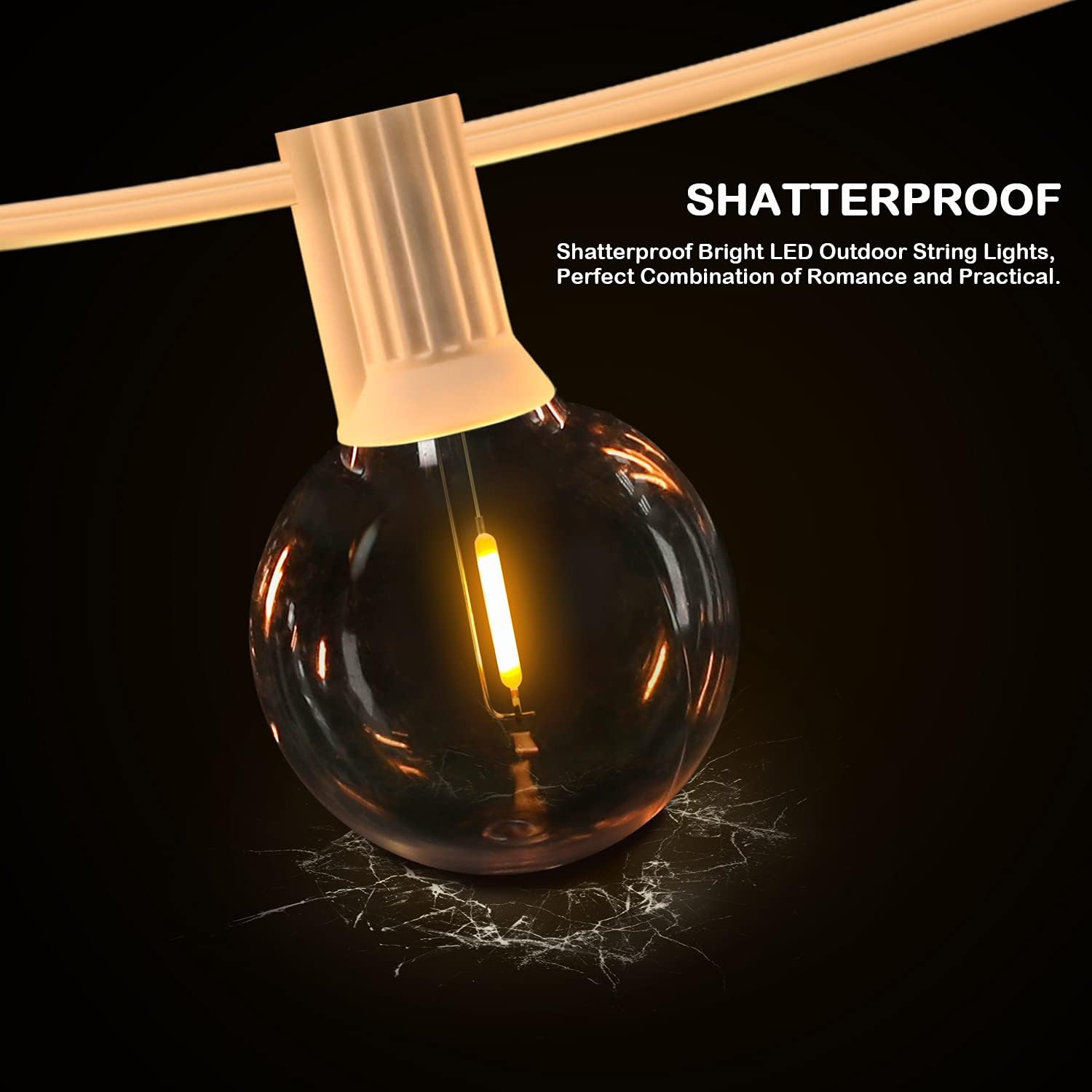- G40 LED Bulbs & Energy-saving and Durable: Top quality outdoor string lights , the entire molded socket and integrated ring are made of strong rubber. It is equipped with G40 LED bulbs for outdoor string lights, which can provide you with a bright with warm atmosphere and save energy and electricity bills. The string lights is very safe to use, each string has been professionally tested. This is definitely a low-voltage, safe, reliable and all-season string light, so suitable for outdoor use