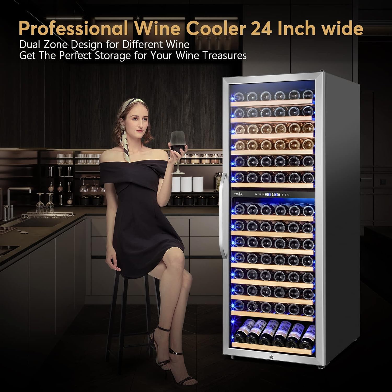 24 Inch Wine Cooler Fridge Dual Zone, Professional Large Capacity High Wine Refrigerator with Powerful Compressor, Quiet Operation and Elegant Design-KMHJ408D