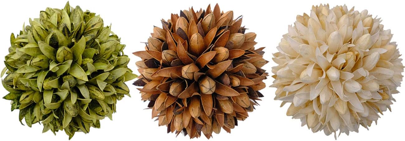 3.5inch Decorative Balls Bowl/Tray &Floral Orb/Ball with Dried Potpourri, Artificial Decorative Balls for Vase Bowl Filler Table Decor for Home,Spa,Reiki, Set of 3