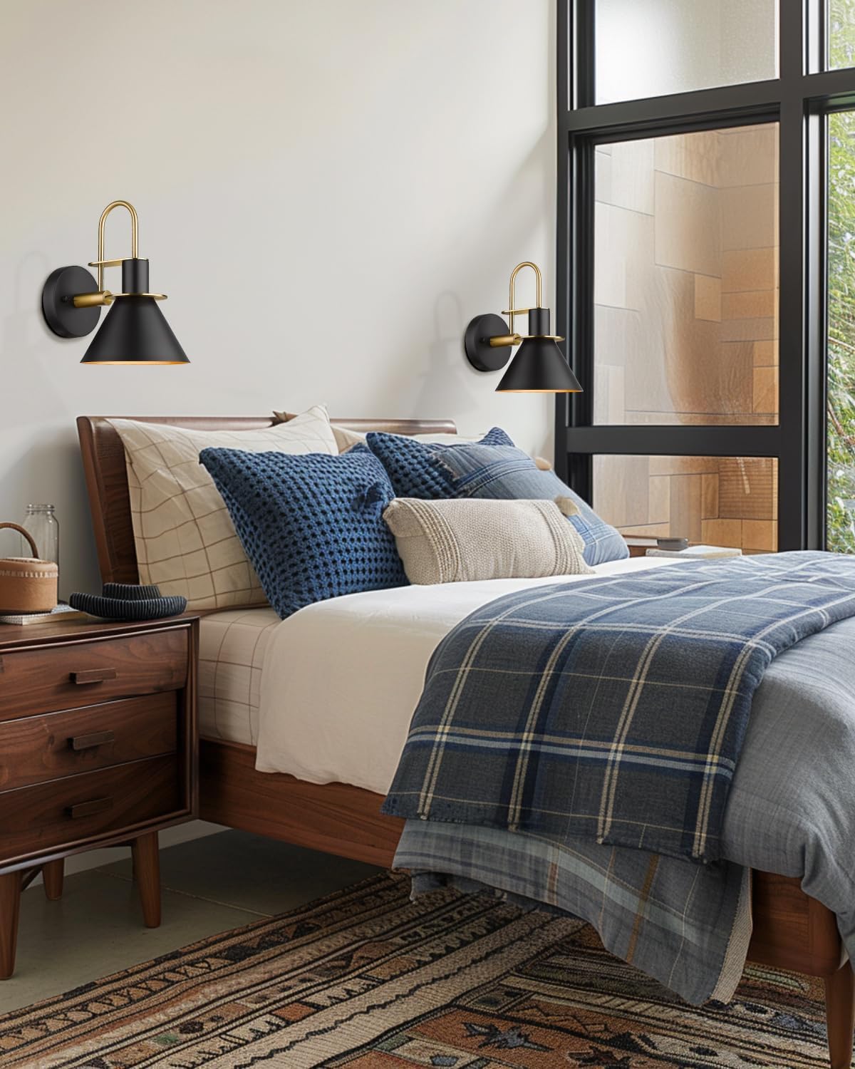 - 【Modern Design】 This single wall lamp compliments the look of almost any indoor or semi-outdoor space, matte black finish decored with brushed gold, the brass interior reflects the light to form an extremely accent contrast. (Attention: Moisture-proof but not waterproof, please keep it away from water)