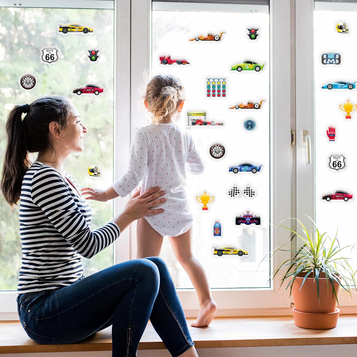 - Wide range of uses: racing car thick gel clings is very suitable for pasting on car windows, refrigerators, walls, classrooms, daycares, bedrooms, game rooms, etc.! These gel clings can also decorate your birthday parties, family gatherings, anniversaries Or racing car parties, etc.