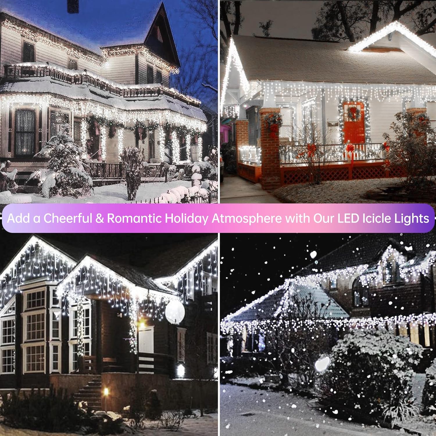 Icicle Christmas Lights Outdoor Decorations 1008 LED 98.4 FT 8 Modes LED Icicle String Light with 189 Drops, Fairy String Curtain Lights for Christmas Holiday Decor Wedding Party (Cold White)