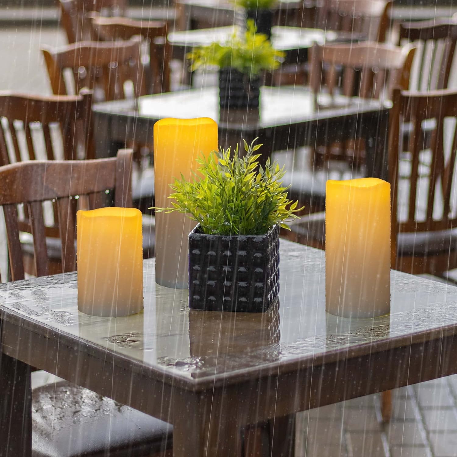 - Waterproof Candles: These plastic LED candles have the real wax candles appearance and feelings, won't melt or deform even in direct sunlight. A perfect match for outdoor lanterns. The IP44 waterproof feature allows you to use them even in the rain and work well in cold environments. PLEASE NOTE: Do not soak its bottom in water for a long time.