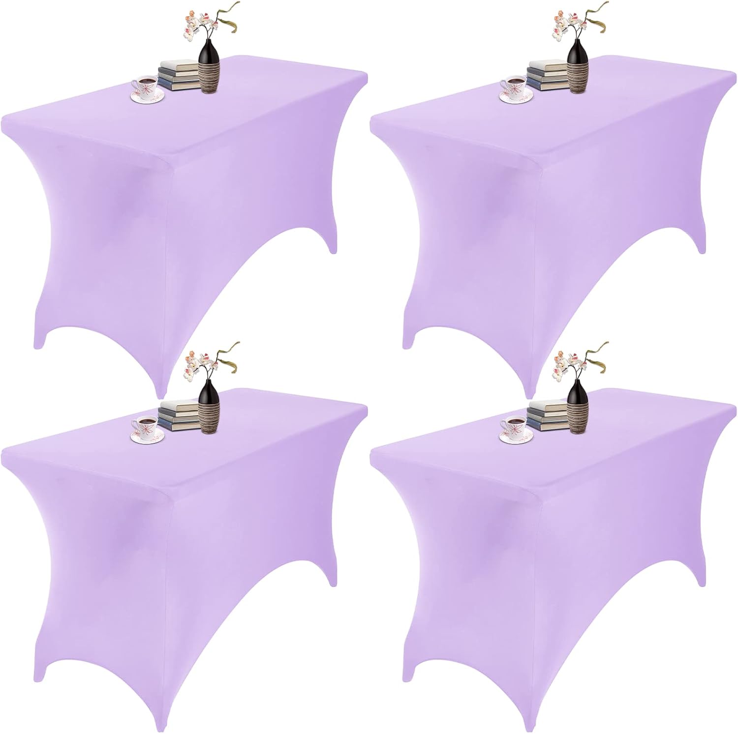 4Pack Spandex Waterproof Table Covers 4ft,Spandex 4ft Waterproof Table Cover for Party,Wedding, Banquet, and Events(Lavender)