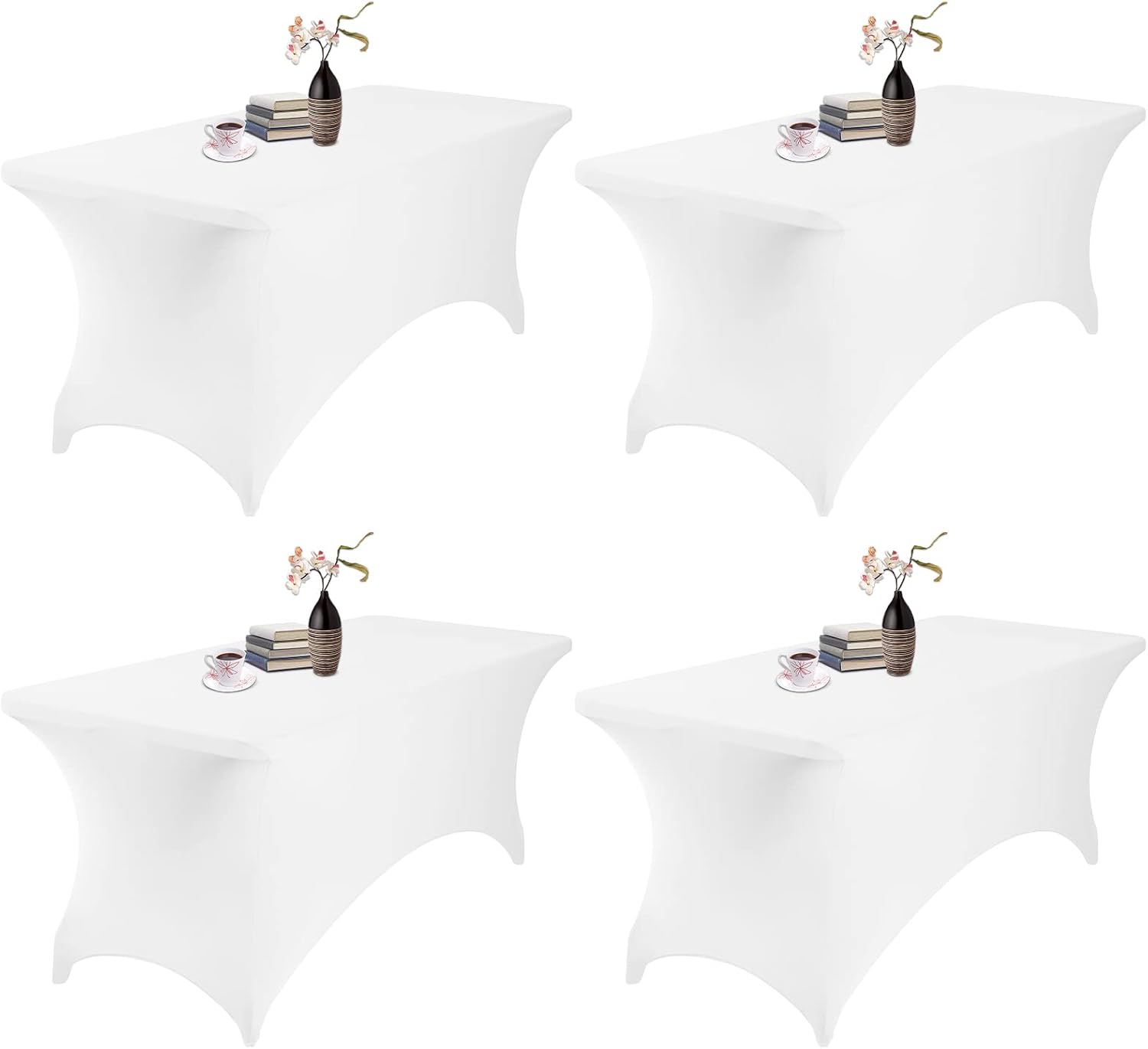 4Pack Spandex Waterproof Table Covers 6ft,Spandex 6ft Waterproof Table Cover for Party,Wedding, Banquet, and Events(White)