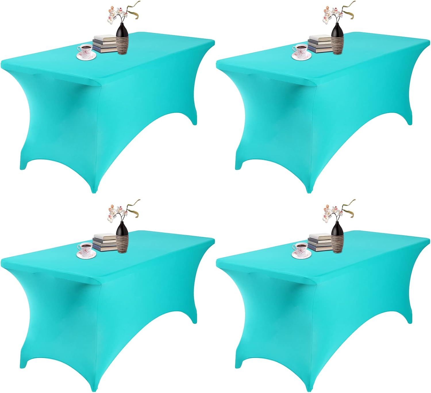 4Pack Spandex Waterproof Table Covers 6ft,Spandex 6ft Waterproof Table Cover for Party,Wedding, Banquet, and Events(Turquoise)