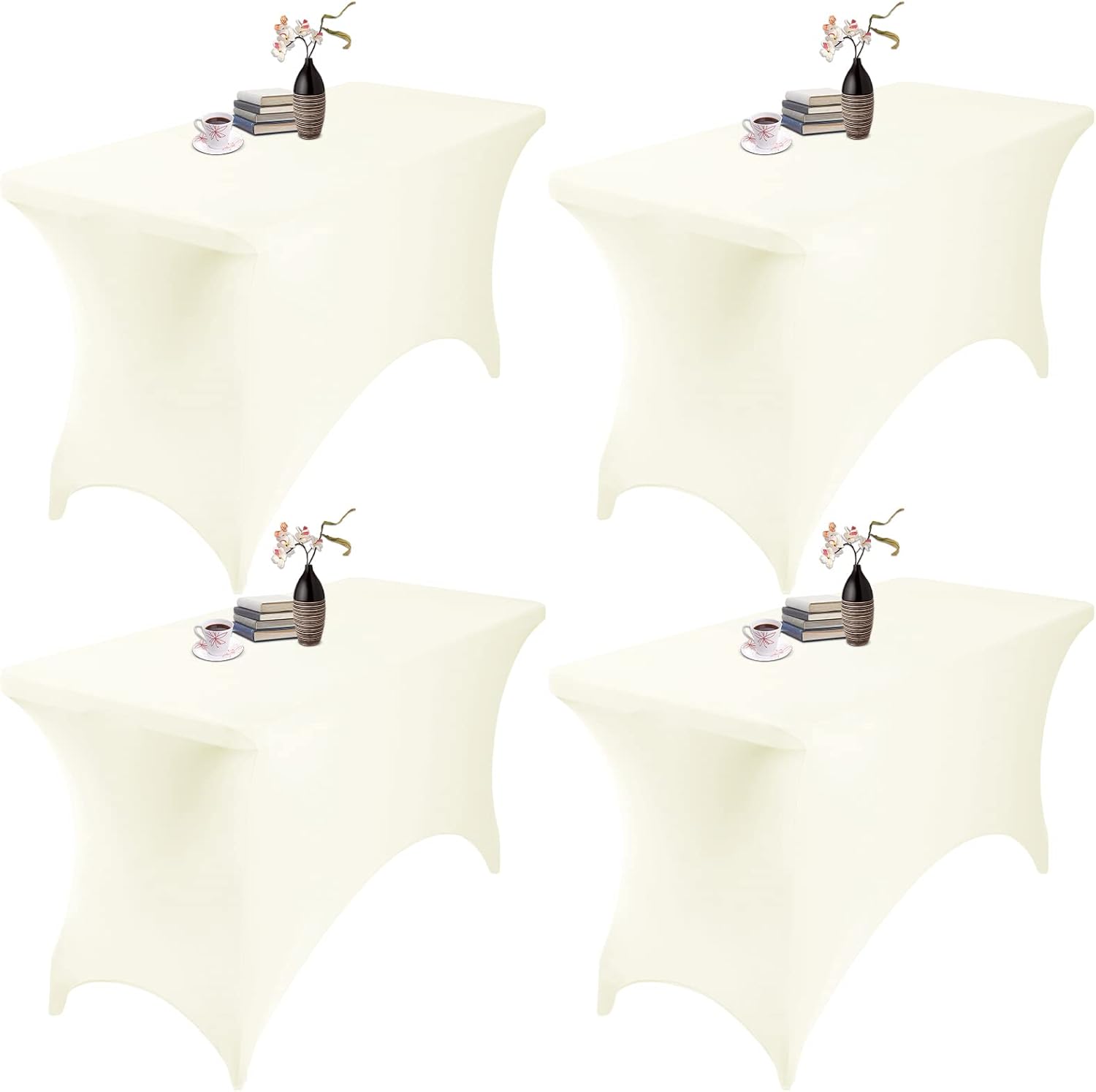 4Pack Spandex Waterproof Table Covers 4ft,Spandex 4ft Waterproof Table Cover for Party,Wedding, Banquet, and Events(Ivory)