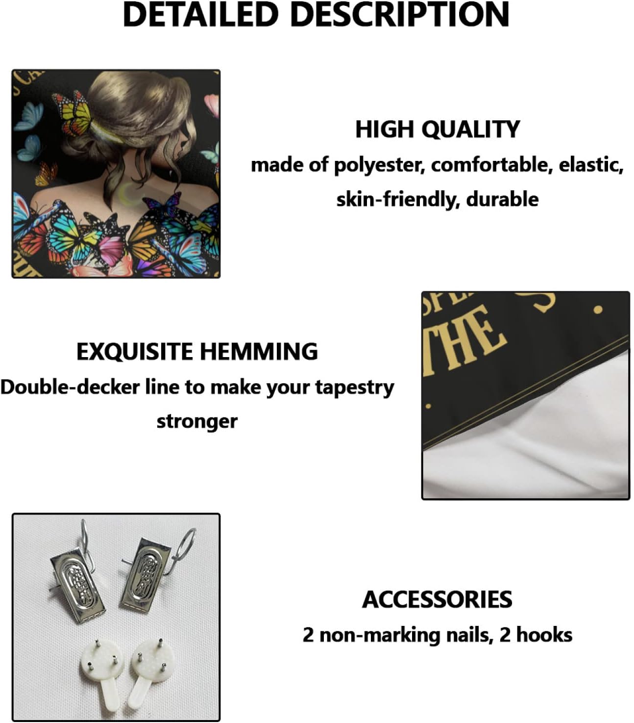 - Material: Butterfly tapestry is made of high quality polyester, soft, durable, skin-friendly and lightweight.