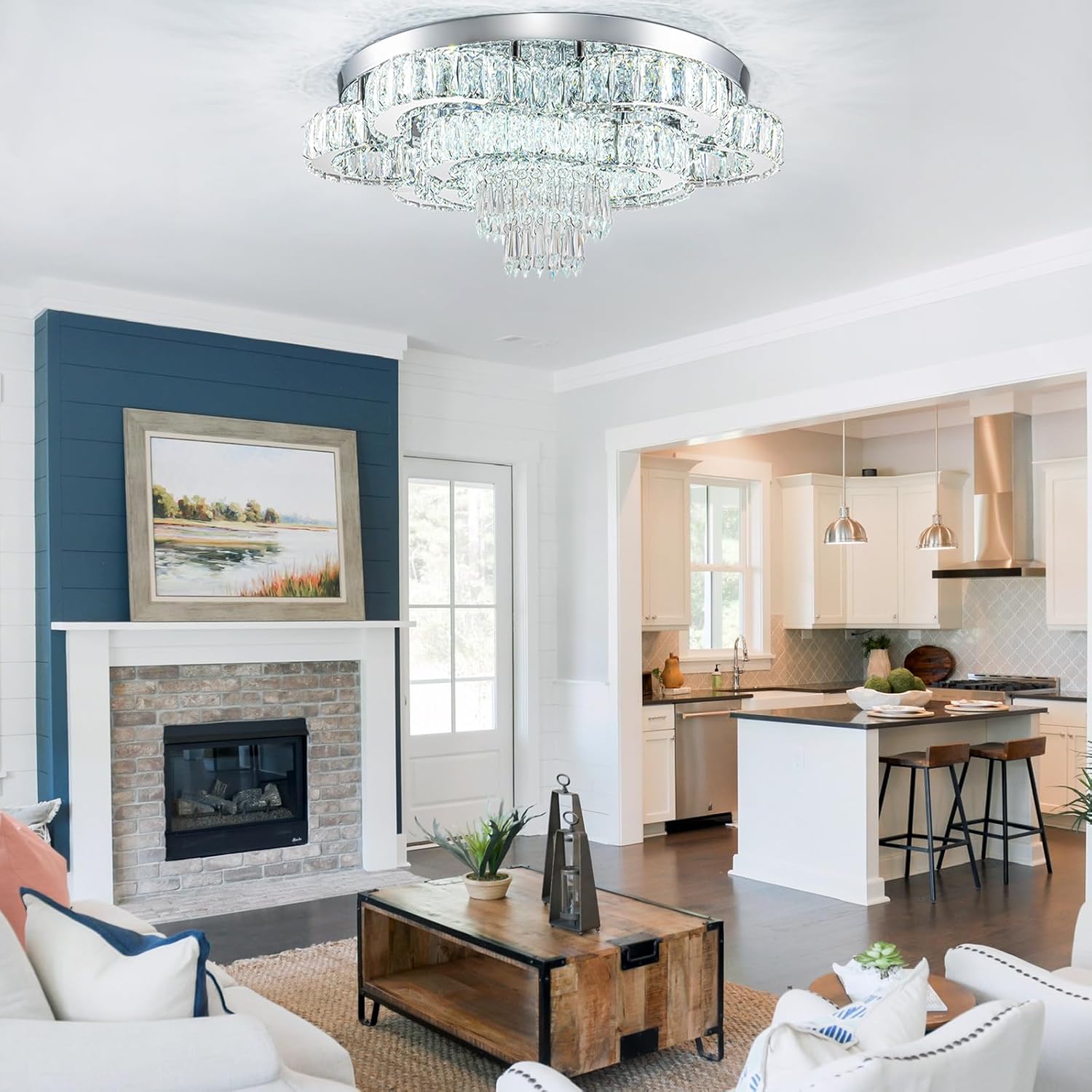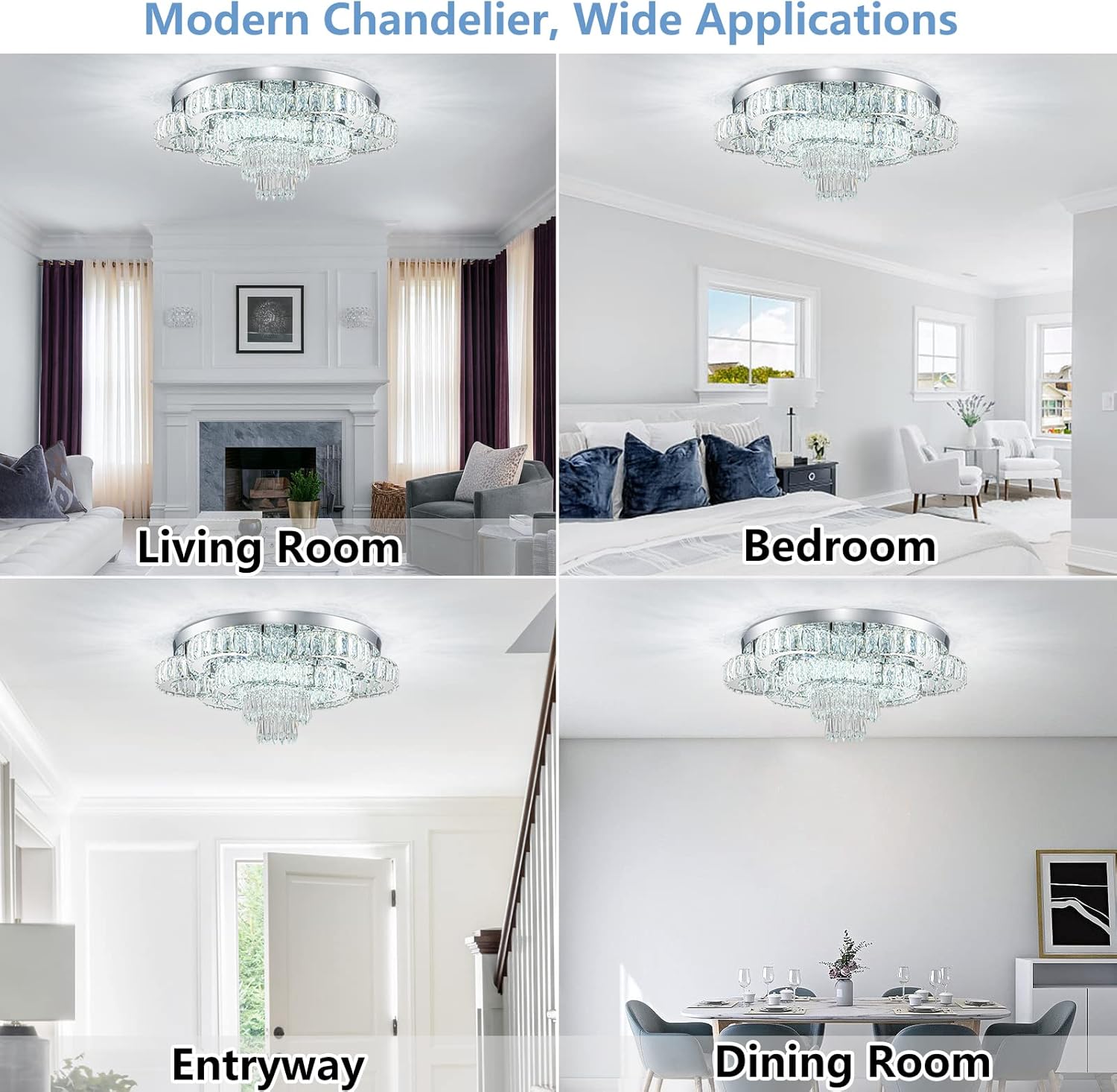 - -Wide Applications: it’s perfect to put this flush mount chandelier in large space or low ceiling such as your living room, dinning room, kitchen, bedroom, closet, foyer, porch, farmhouse, hallway, hall, study etc.
