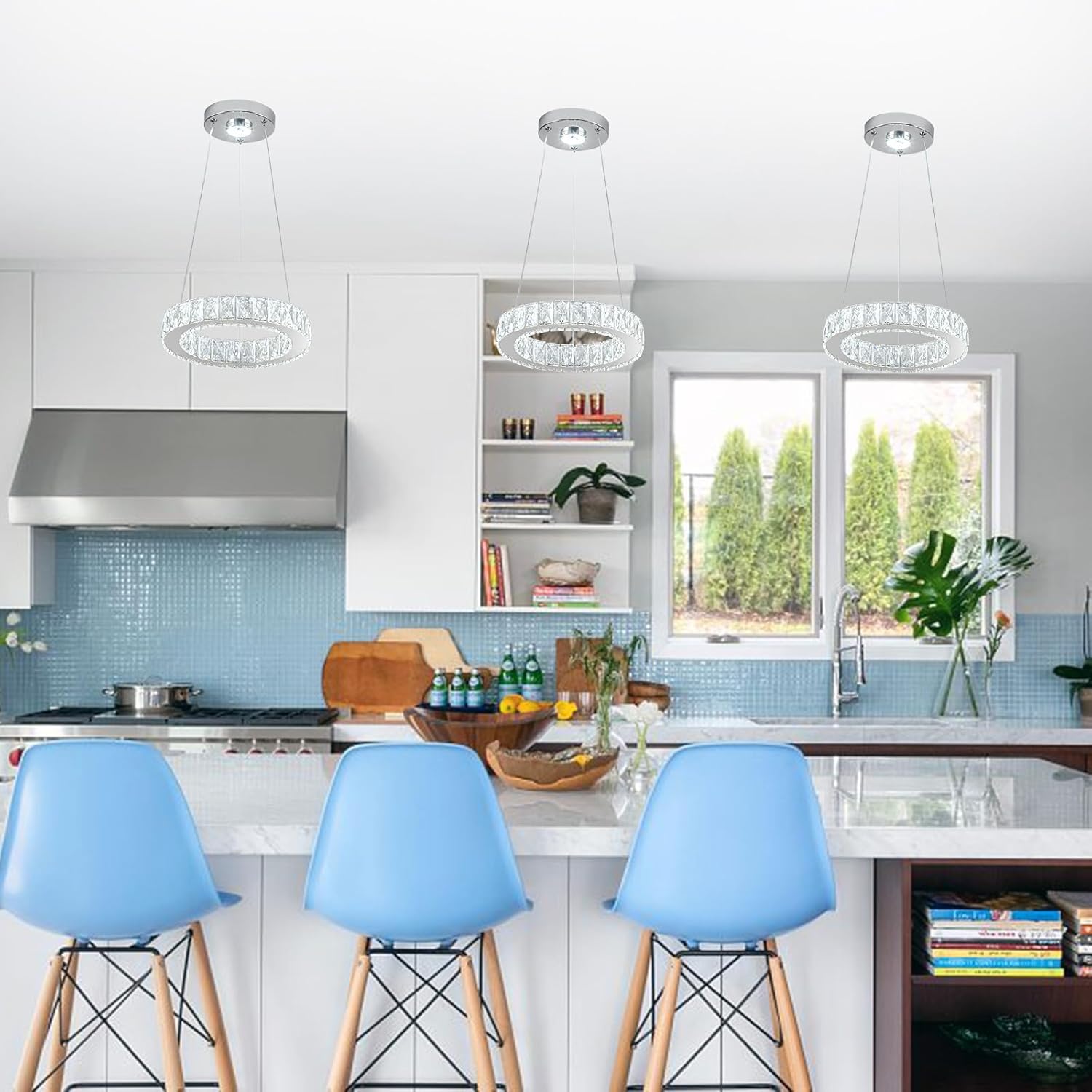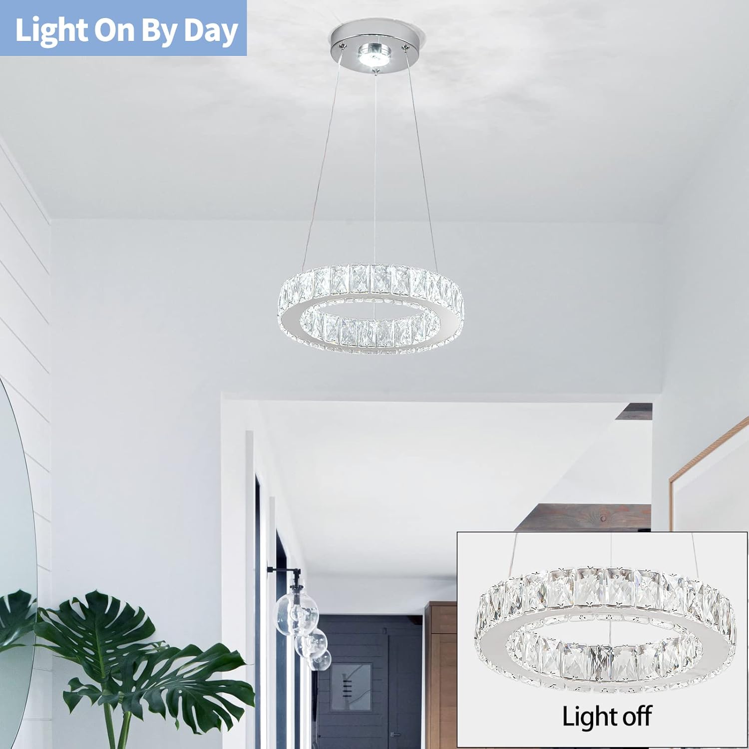 11.8" Crystal Chandelier LED Round Flush Mount Ceiling Light Fixture Modern Hanging Pendant Lighting Mini Ring Chandeliers for Dining Room Kitchen Island Hallway Bathroom (Cool White)