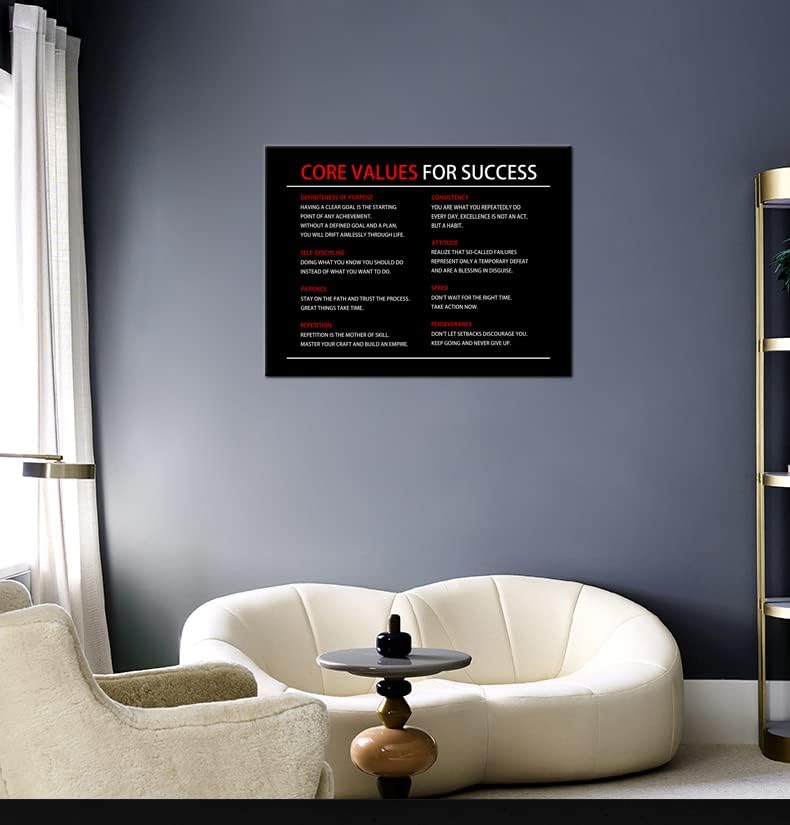 Inspirational Canvas Painting Wall Art Core Values Quote Motivational Wall Art Inspiring Poster Positive Motivational Framed Artwork Prints Picture for Living Room Office [18''Wx 24''H]