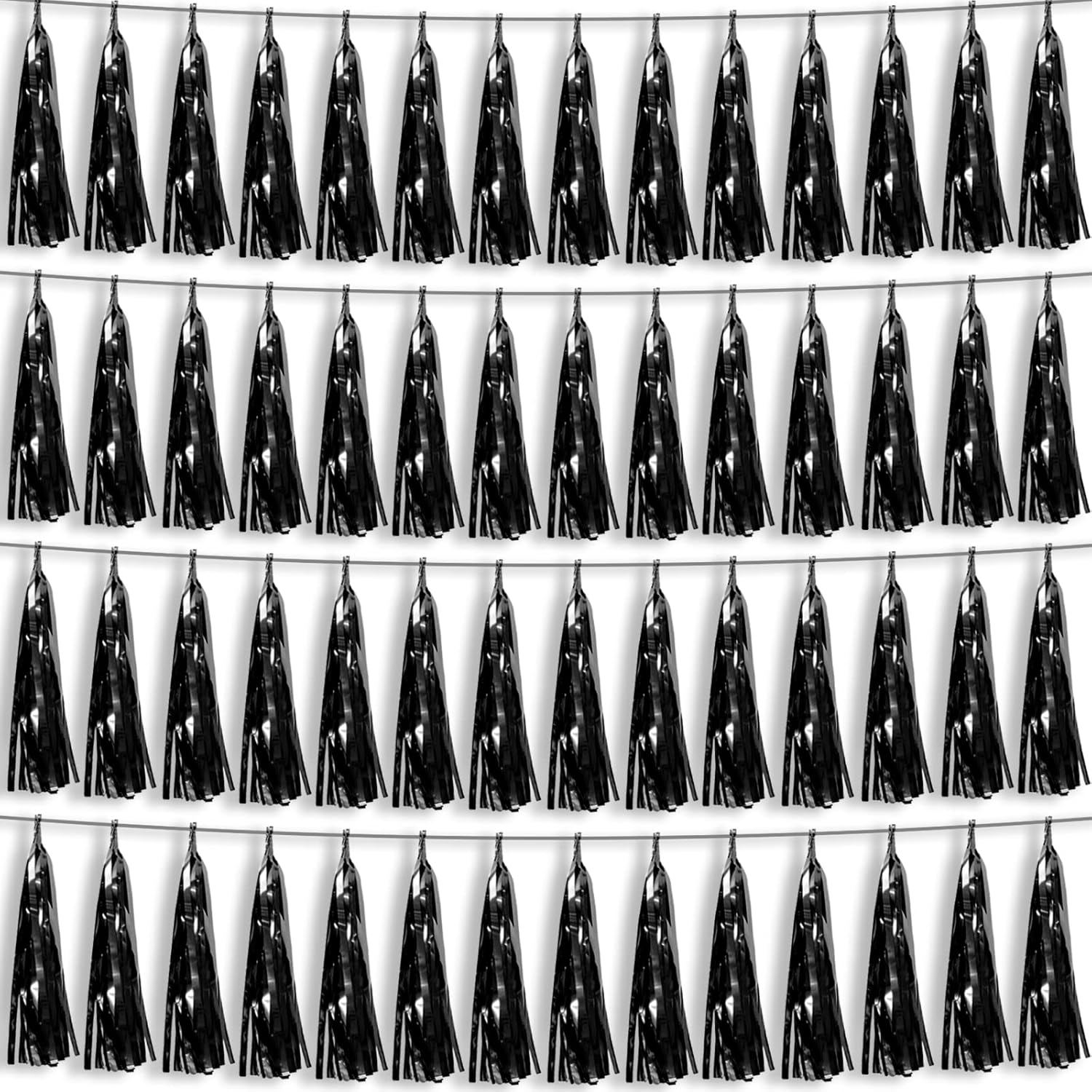 4P Black Foil Fringe Metallic Tassel Streamers Banner Tassel Garland for Parade Floats, Bachelorette, Wedding, Birthday, Halloween, Christmas, Bridal/Baby Shower Party Decorations