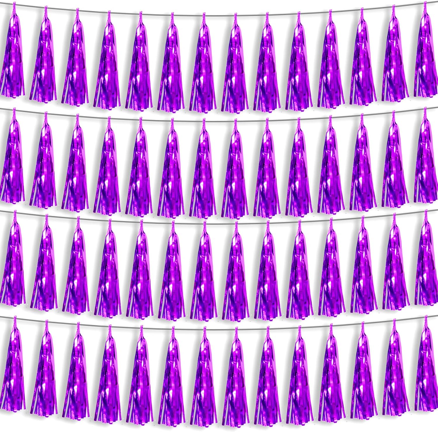 - 【Perfect Party Decoration】The purple tinsel garlands are designed in a metallic Fringe, bright, and beautiful, at the same time, they shine in the sun, and these gorgeous tassel garlands create a wonderful backdrop or centerpiece for your party space. and bring you, your family, and your friend's good Visual effects. your party many emotional and touching moments where a lot of pictures will be taken and everybody will have a wonderful time together.