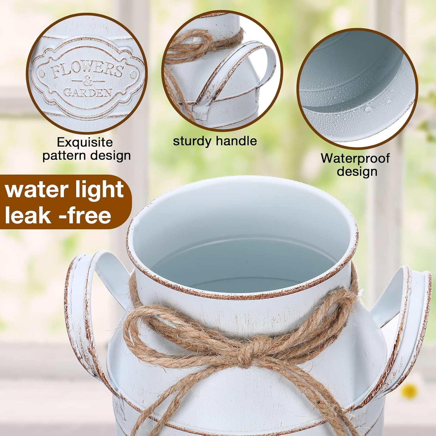 - Vintage and Practical: our farmhouse vase decor is white and printed with some vintage patterns on it, which make it more classic and eye catching; It is designed with 2 handles, convenient for you to hold and carry