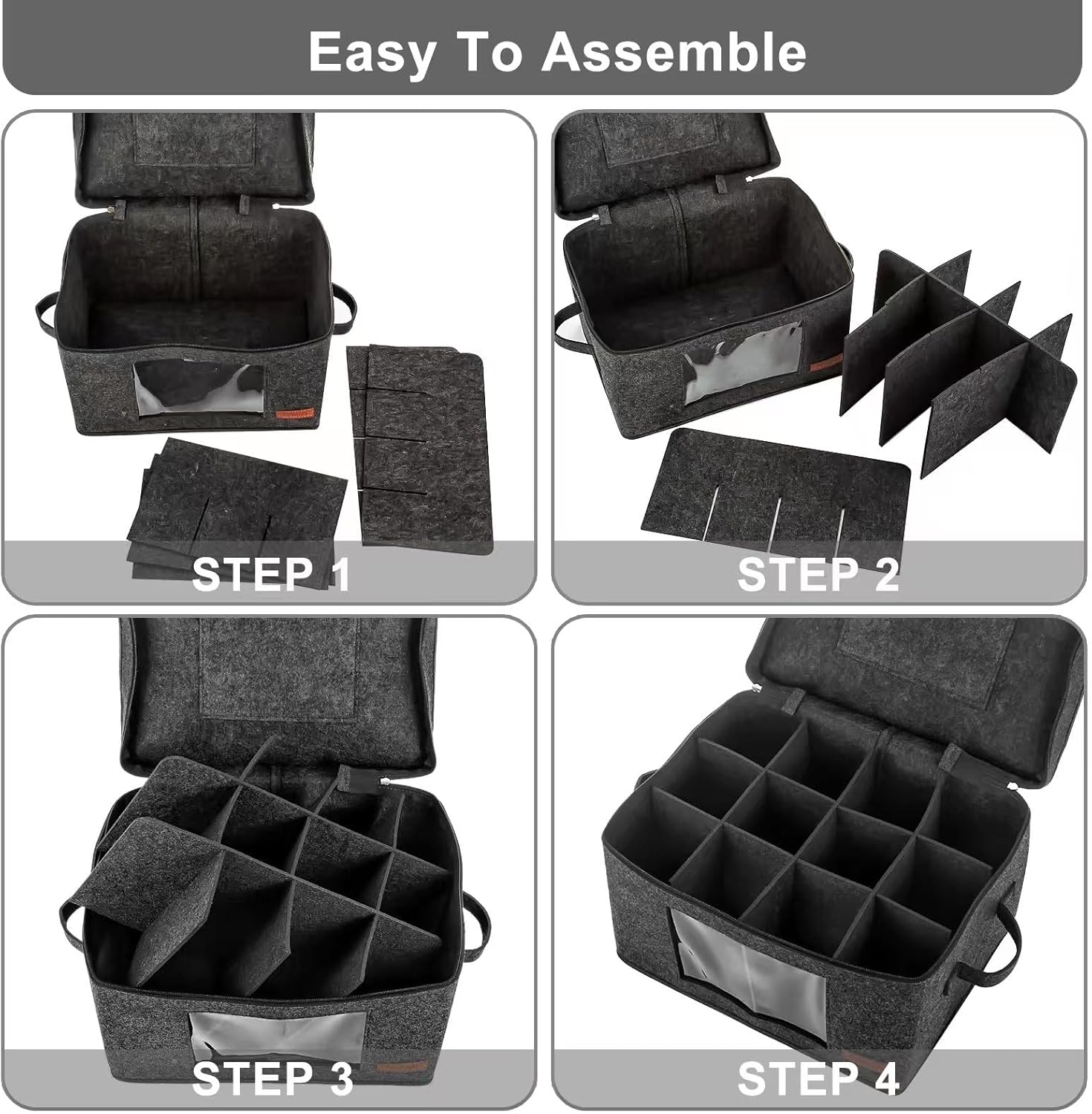 - MULTI-PURPOSE: Our wine glass storage box can be folded and easy to carry. Use this china storage containers to safety store your special wine glasses, mugs, tea cups, glasses, toys, christmas ornaments, small ceramic pieces and more.