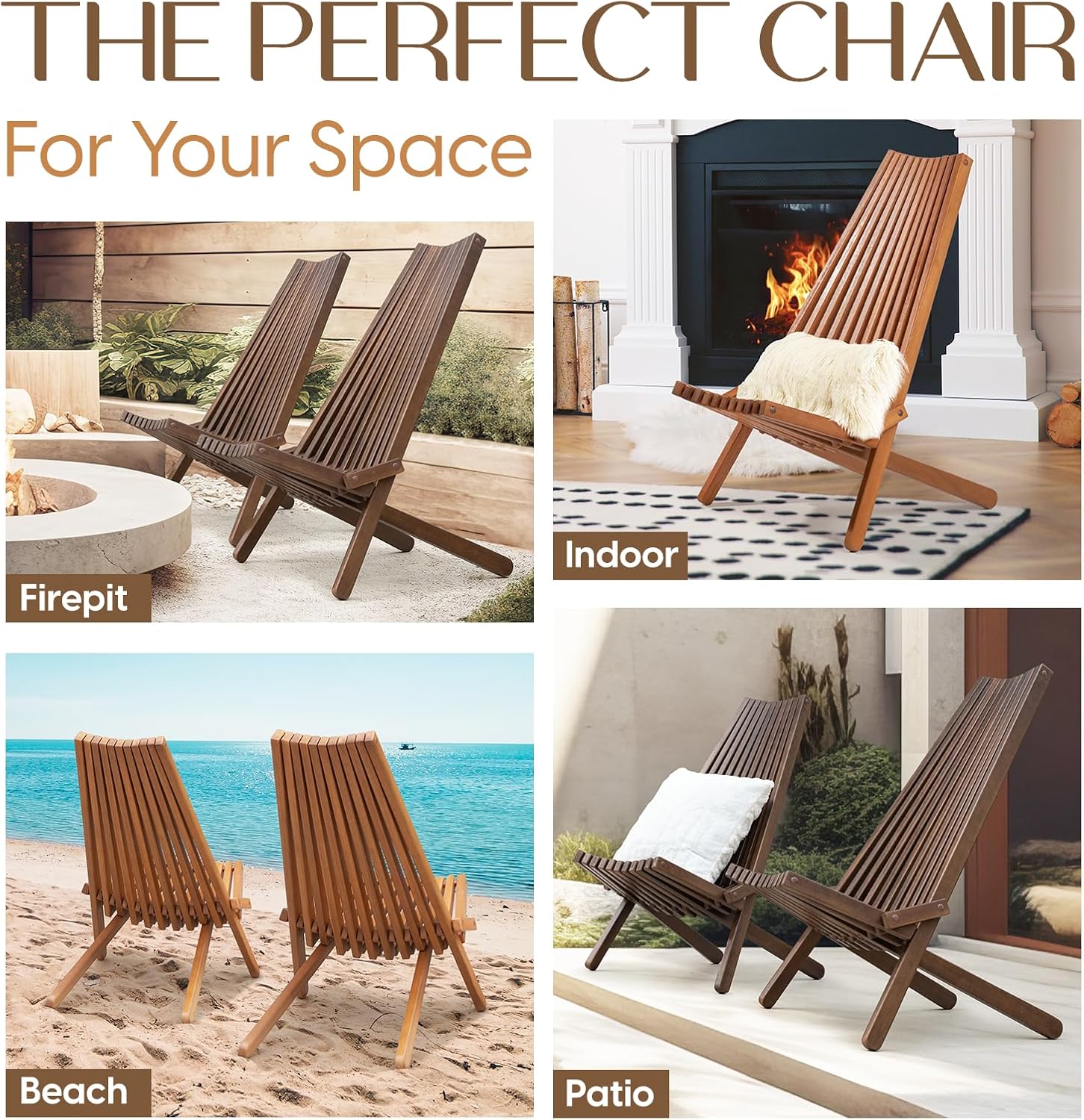 - 🪑 FOLDABLE TAMARACK CHAIR: This unique folding wooden chair elevates any space it graces; The space saving wood patio chair folds up easily for storage; This tamarack chair, as an alternative to modern adirondack chair is easy to maintain with just a wipe