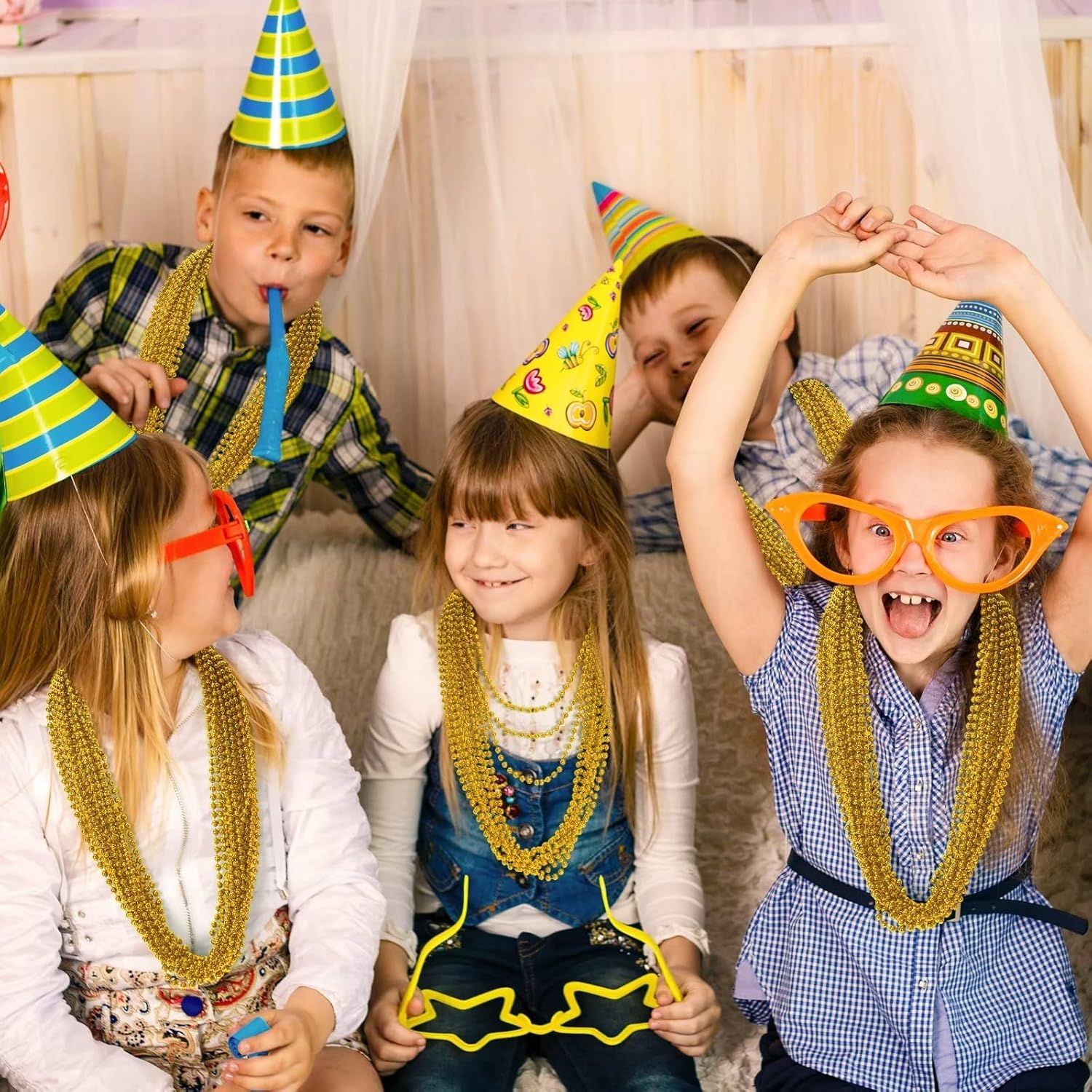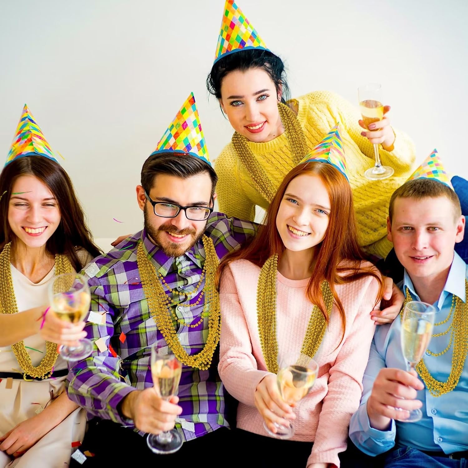 50PCS Mardi Gras Beads, Gold Bead Necklace Stuff, 33" Mardi Gras Christmas Beads Necklace Costume, Festival Parade Throw Accessories for Mardi Gras St Patricks Xmas Wedding Birthday Supplies Decor
