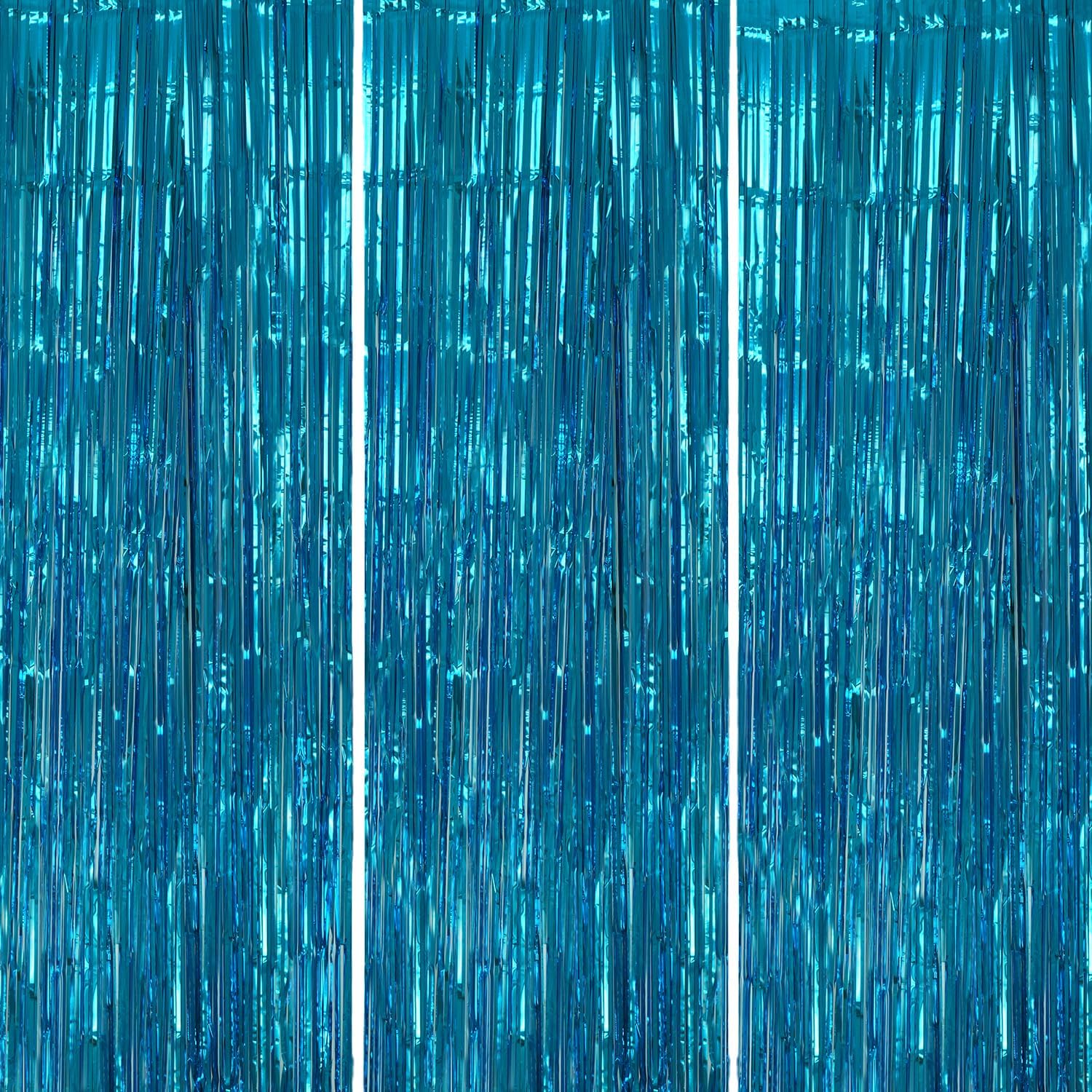 3 Pack Foil Fringe Backdrop - Blue Shiny Tinsel Curtains for Party Decoration/Photo Booth Props - 3.3x8.2 FT Metallic Foil Backdrop for Birthday, Wedding, Graduation, Christmas.