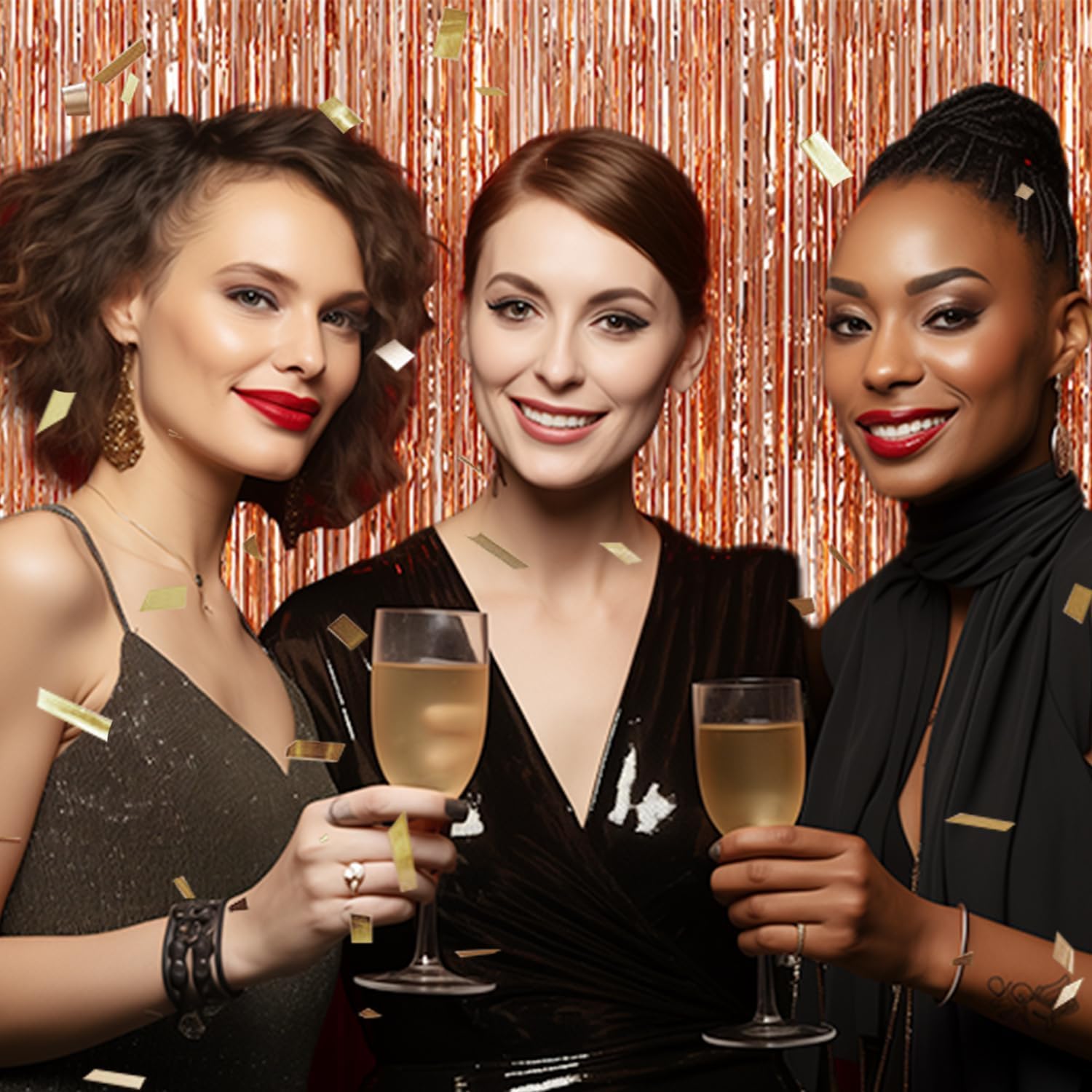 3 Pack Foil Fringe Backdrop - Rose Gold Shiny Tinsel Curtains for Party Decoration/Photo Booth Props - 3.3x8.2 FT Metallic Foil Backdrop for Birthday, Wedding, Graduation, Christmas.