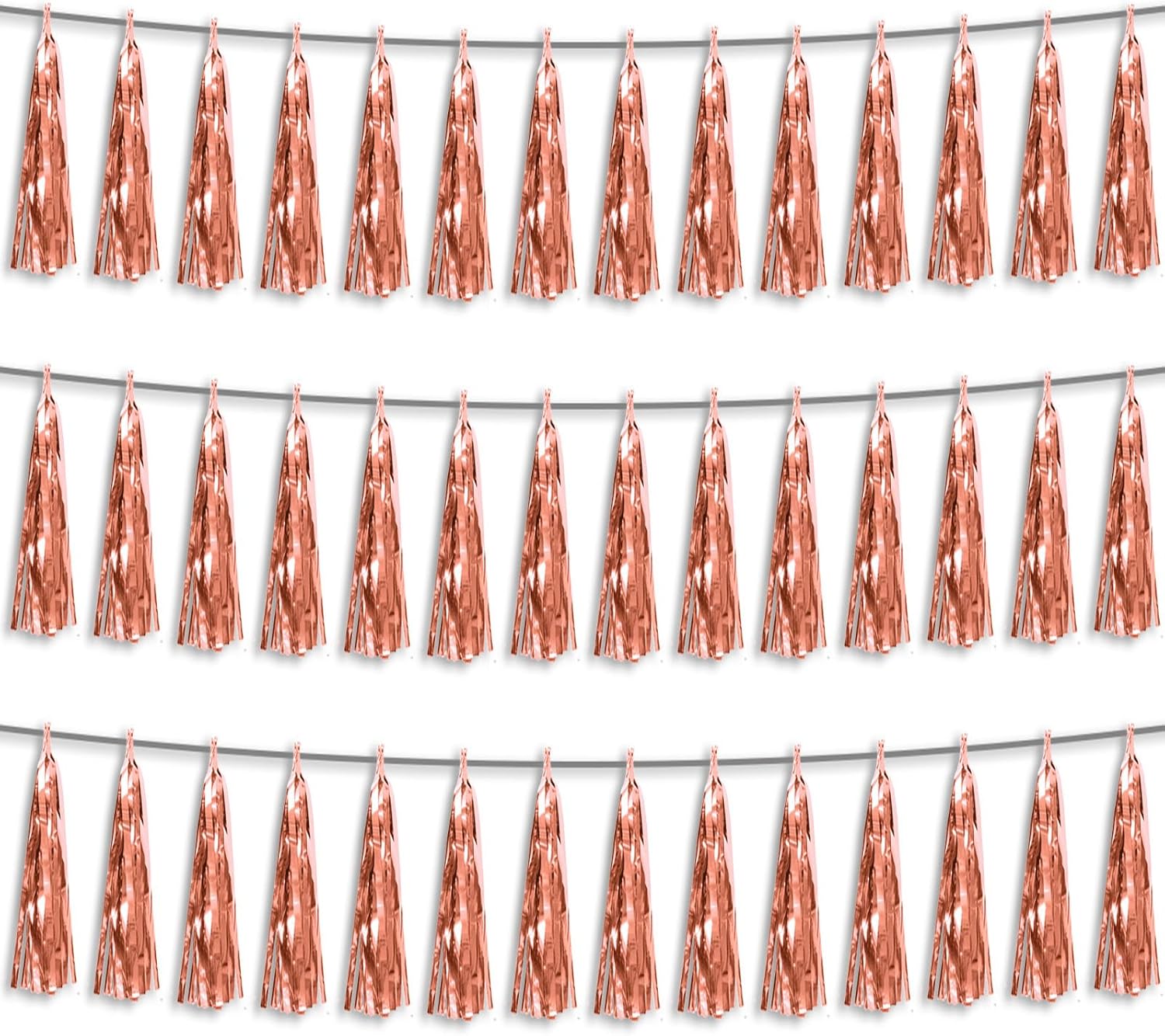 3P Rose Gold Foil Fringe Metallic Tassel Streamers Banner Tassel Garland for Parade Floats, Bachelorette, Wedding, Birthday, Halloween, Christmas, Bridal/Baby Shower Party Decorations