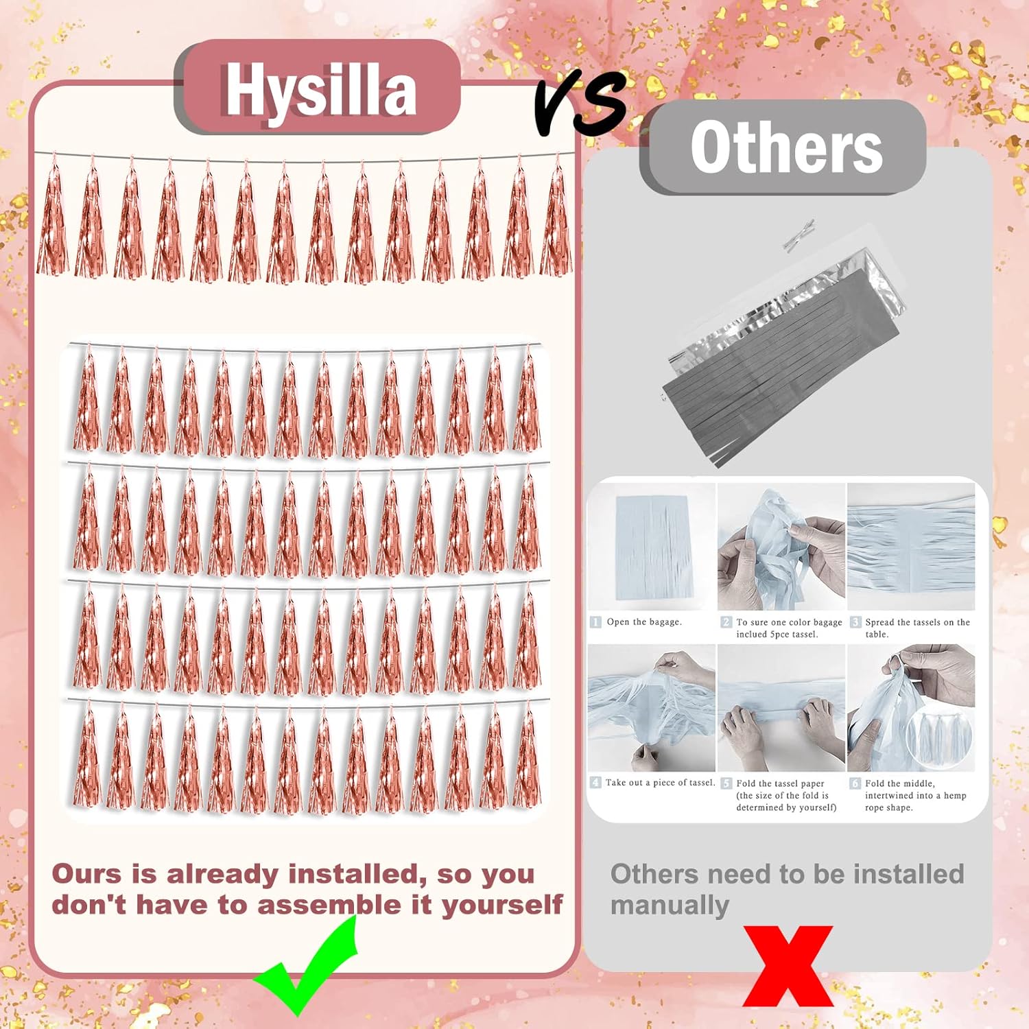 - 【Perfect Party Decoration】The rose gold tinsel garlands are designed in a metallic Fringe, bright, and beautiful, at the same time, they shine in the sun, and these gorgeous tassel garlands create a wonderful backdrop or centerpiece for your party space. and bring you, your family, and your friend's good Visual effects. your party many emotional and touching moments where a lot of pictures will be taken and everybody will have a wonderful time together.