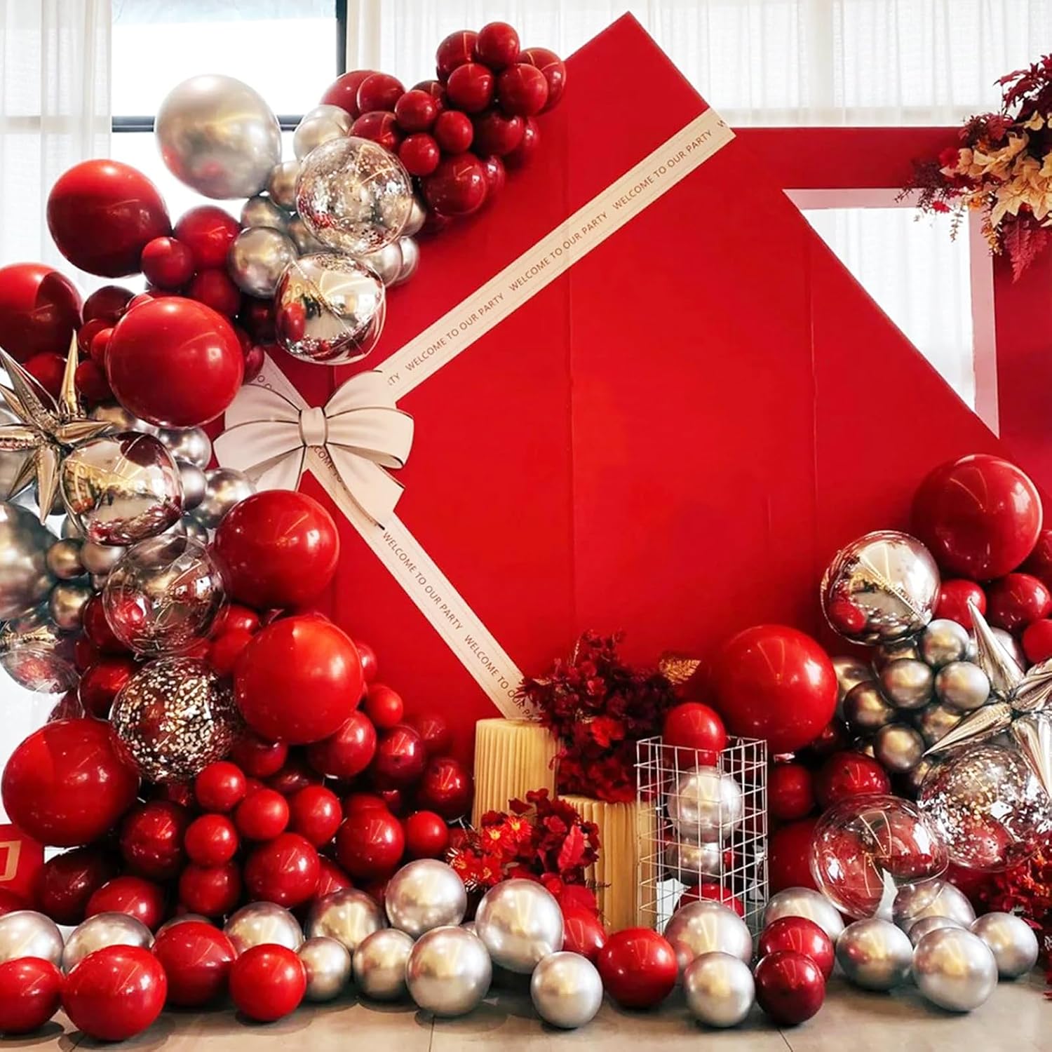 - Easy to Assemble Ruby Red Balloon Garland Kit: We will provide adhesive dots and ribbons as tools to enable you to assemble ruby red balloon garland arch kit in a short time. What's more, we will provide an instruction manual about how to use these tool, so you don't have any trouble, enjoy the party