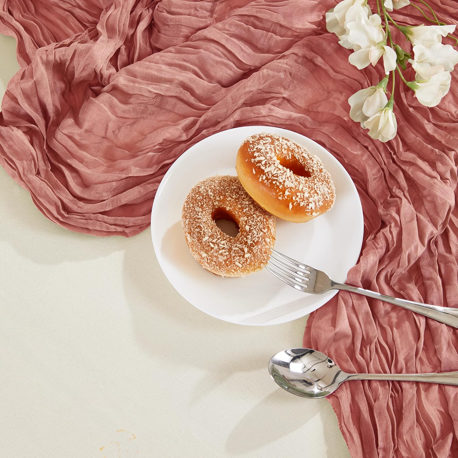 - PREMIUM MATERIAL: The cheesecloth table runner is made of high-quality polyester. Carefully sewn, delicate edge, not easy to lose thread, not easy to decolorize, lightweight and skin-friendly, can be cut into any length and shape. High-quality fabrics hang on banquet tables to add a romantic, sophisticated and fluid atmosphere and can be paired with flowers, candlesticks, greenery and other decorations to impress guests