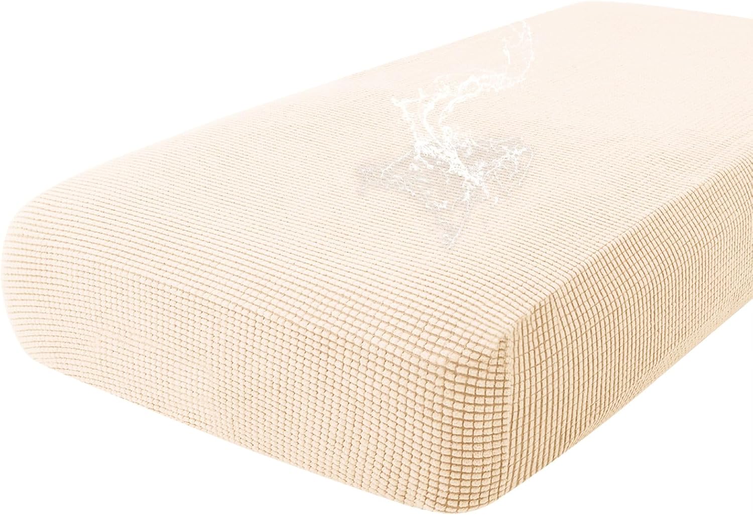 hyha Waterproof Couch Cushion Covers for Pets, Non Slip Sofa Seat Cover for Dogs Washable, Soft Thick Stretch Jacquard Fabric, Sofa Slipcovers with Elastic Bottom (1 Piece for Large, Beige)