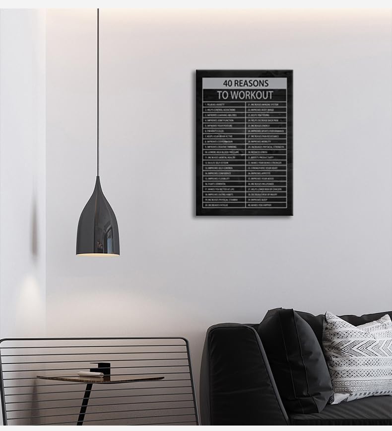Inspirational Canvas Wall Art Painting Quote Office Wall Decor Pieces Success 40 Reasons to Workout Poster Positive Motivational Framed Artwork Prints Picture for Living Room School[12" W X 18" H]