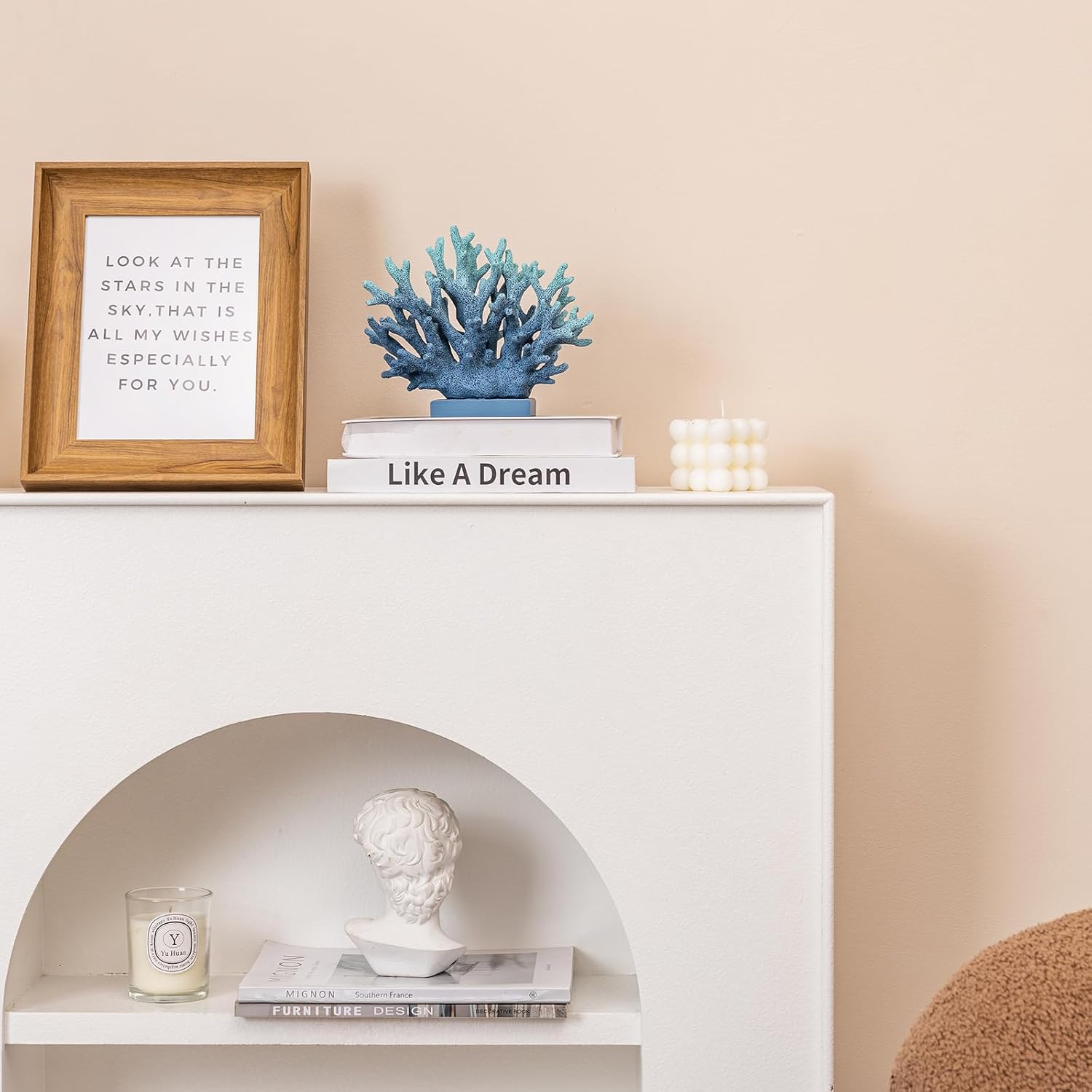 5.8" H Blue Coral Decor, Resin Coral Statue, Nautical Decorations for Home, Beach/Coastal/Ocean Themed Cabinet Shelf Tabletop Decor