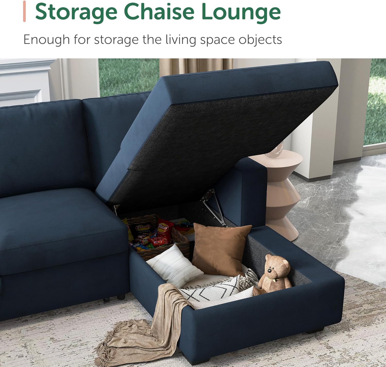 - 【Couch with storage】 Sufficient storage space can help you to store daily necessaries, such as blankets, cushions, books and toys. Dimensions: 53.1*22.4