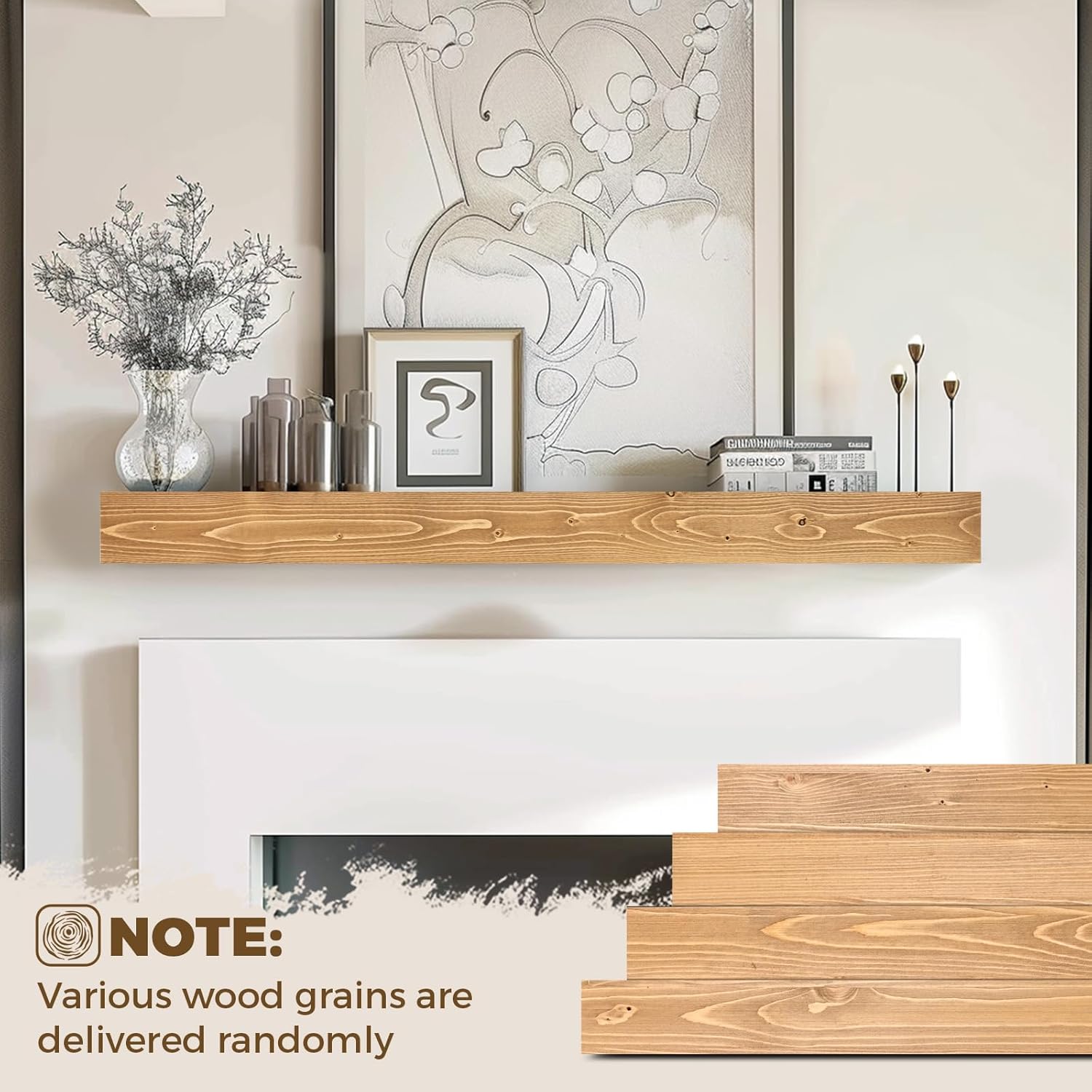 - Wall-Mounted Design: The fireplace mantels feature an elegant floating design, offering a clean and tidy appearance, making them the perfect choice for displaying decorations or storing daily items. These mantels are not only furniture, they are a lasting investment in the beauty of natural wood, carefully processed to suit your home even better