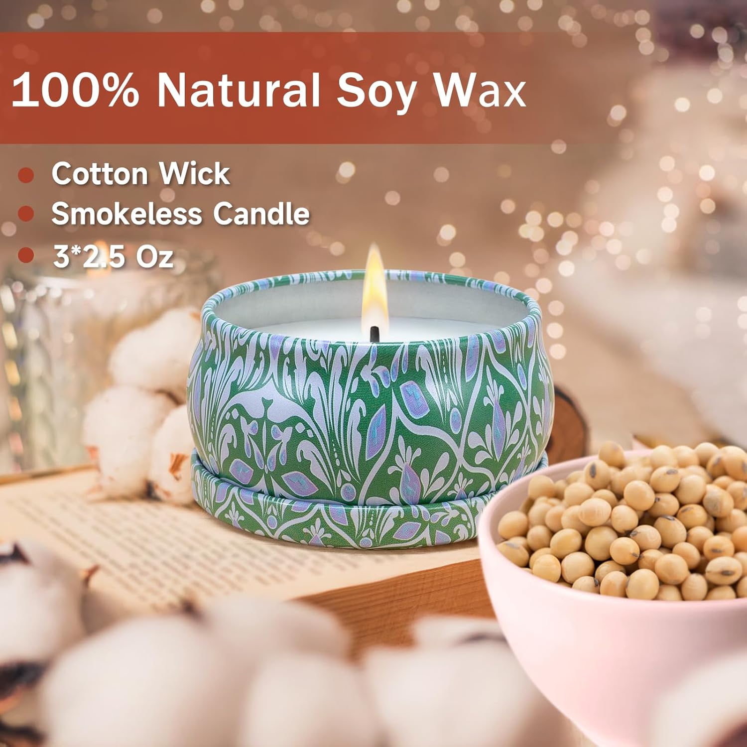 - 100% Natural Soybean Wax: The scented candle is made of pure soybean wax, which fills the air with natural and beautiful flower fragrance, and is harmless to the body. Different scents can be used according to different moods.