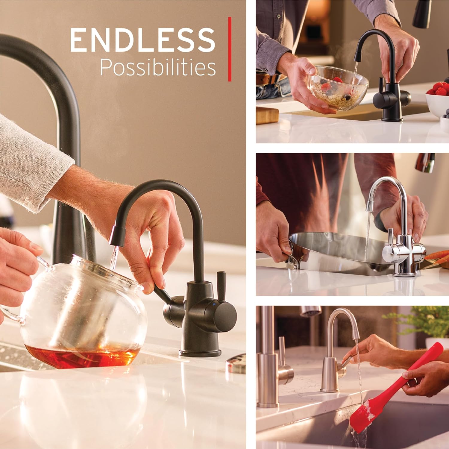 - Product 1: ON-DEMAND, NEAR-BOILING WATER: Instant hot water (approximately 200 degrees F) right next to the main kitchen faucet when you need it, for cooking, cleaning, and more; a time, space, and energy saver that lets you get on with more important things in life