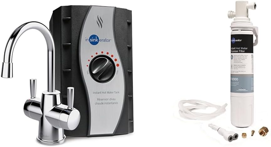 InSinkErator Stainless Steel Tank, HC250C-SS HOT250 System, 2-Handle Drinking Faucet in Chrome & F-2000S Premium Under Sink Water Filtration System for Instant Hot and Cold Water Dispe