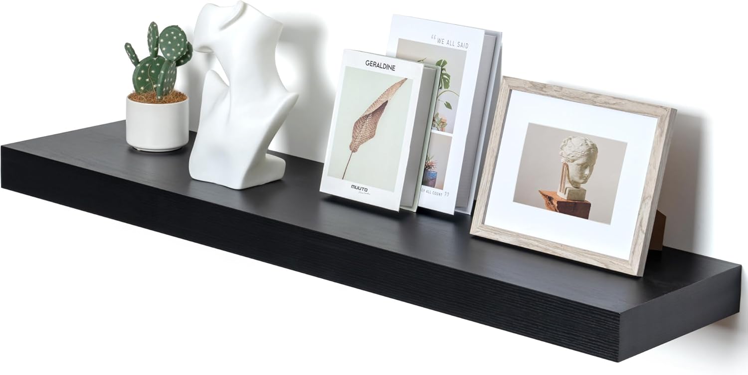 - DEEPER & THICKER SHELF- Our floating shelves measure 48W x 11.6D x 2H, deeper and thicker than usual wall shelves, which create more storage and display space for your home