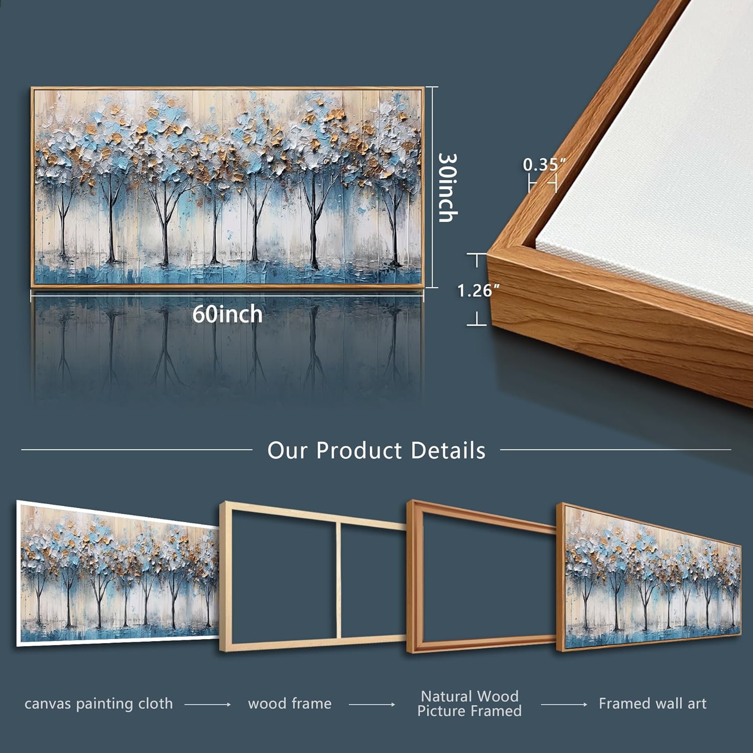 - 【PREMIUM QUALITY】Select Natural Wood Framed, High Definition Giclee Picture.High Quality Canvas Stretched Over A Real Wooden Frame,Which Is More Textured, More Advanced. More Beautiful.Metal Hanging Hook Is Already Attached To The Frame Ready To Hang.High-Grade And Gorgeous Artwork, As A Unique Wall Decoration Art Style, Will Become A Perfect Complement To Wall Art And Become An Excellent Mural Artwork.
