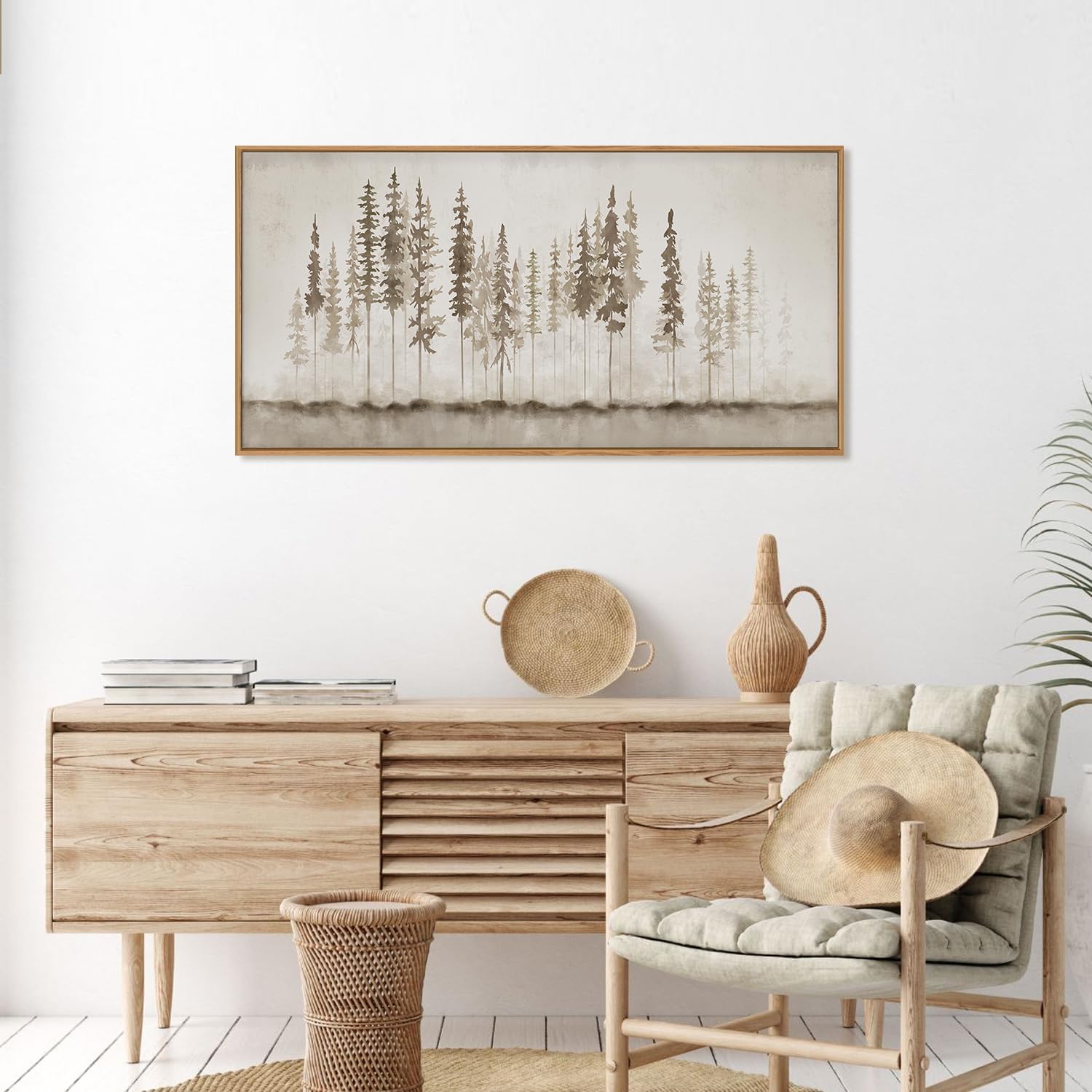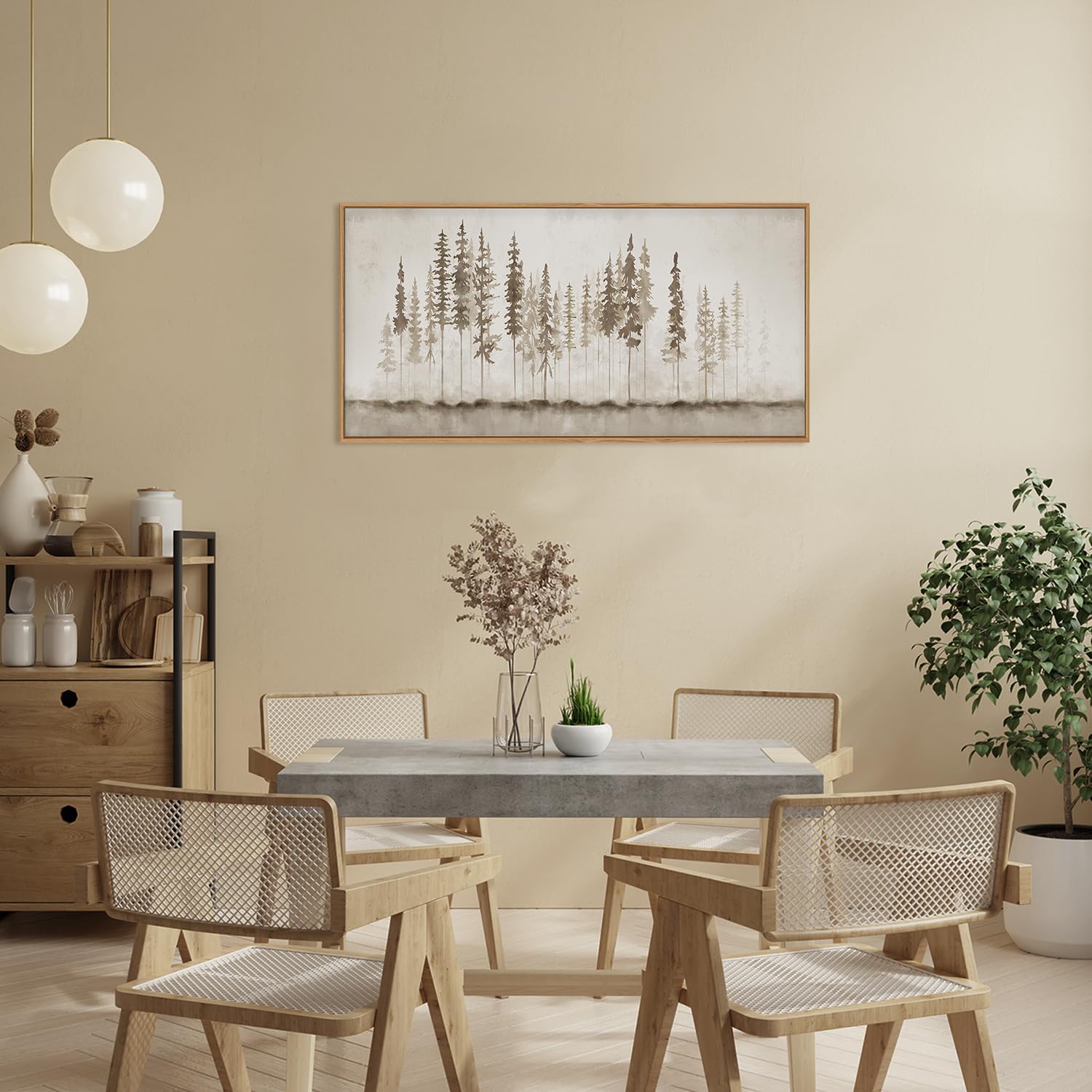 HPINUB Misty Forest Framed Canvas Wall Art Set, Foggy Pine Tree Wall Decor, Pastel Nature Landscape Wall Painting, Evergreen Coniferous Plant Art Print for Living Room, Bedroom, Office - 20"x40"
