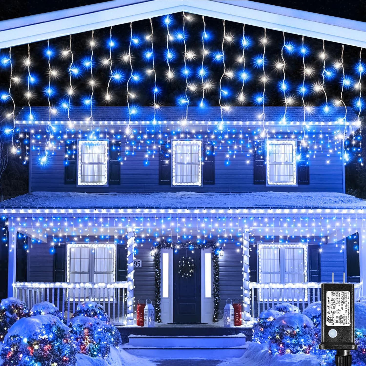 Icicle Lights for Outside, 33FT 400 LED Christmas Lights Outdoor with Waterproof 8 Modes, Plug in Connectable String Twinkle Light for Indoor Home Roof Window Garden Wedding Decorations, Blue White