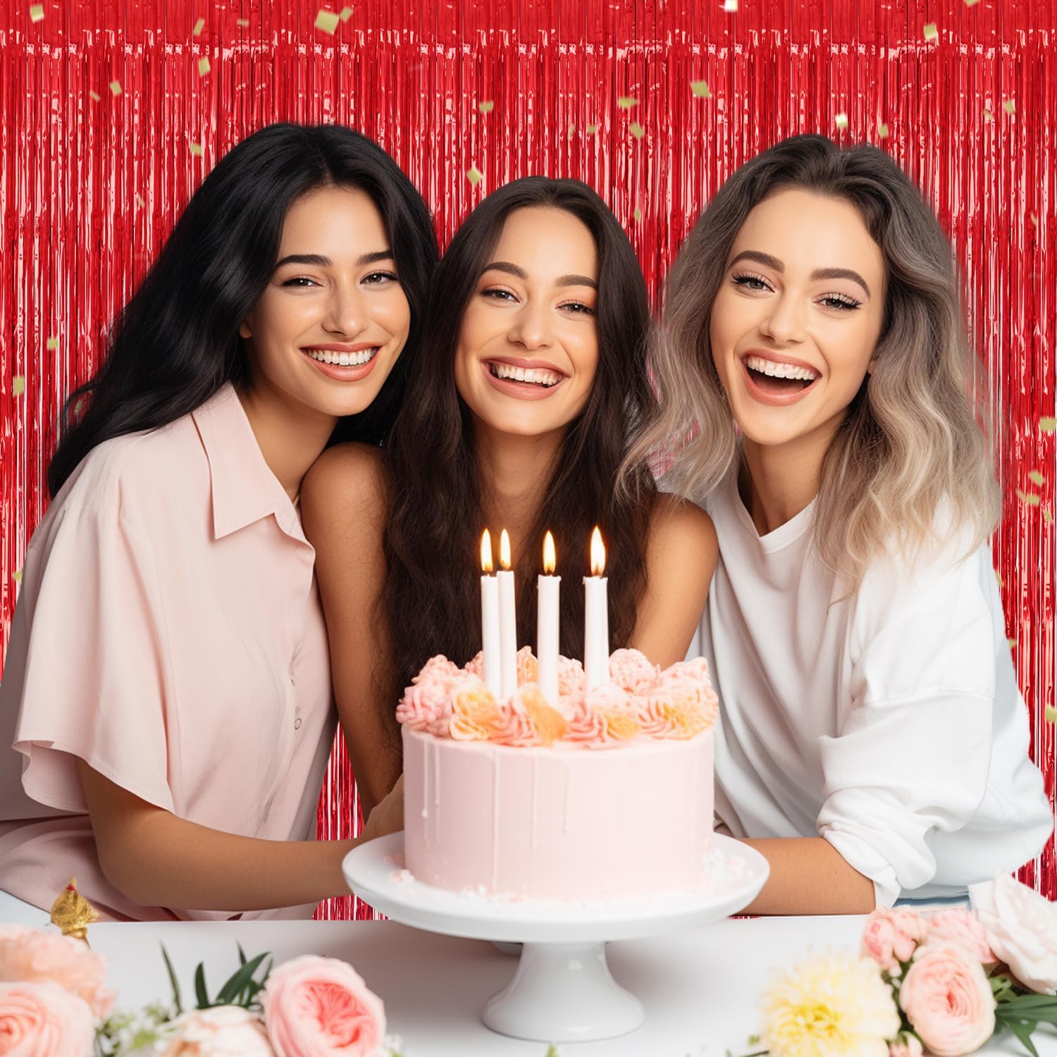 3 Pack Foil Fringe Backdrop - Red Shiny Tinsel Curtains for Party Decoration/Photo Booth Props - 3.3x8.2 FT Metallic Foil Backdrop for Birthday, Wedding, Graduation, Christmas.