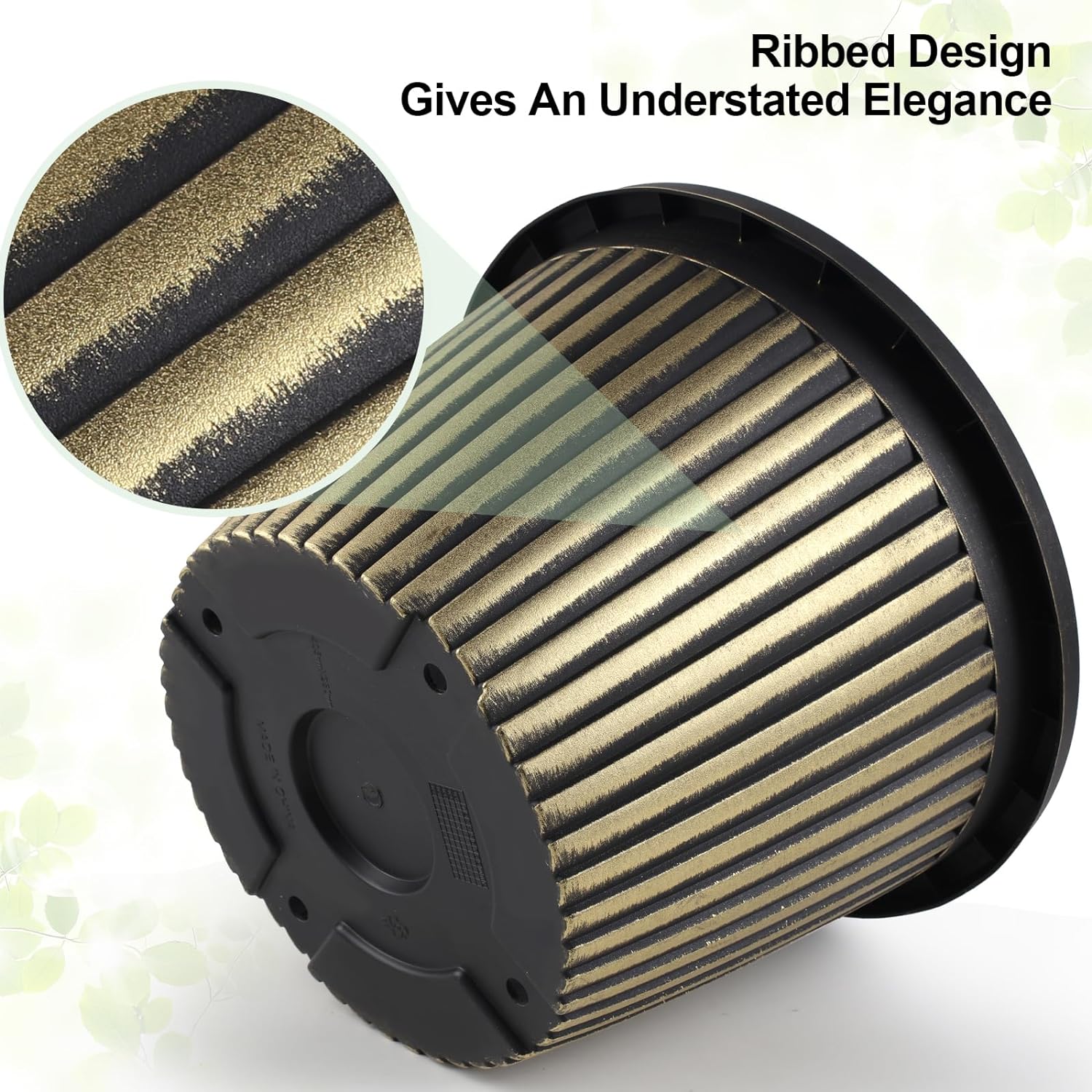 - 【MODERN STYLE PLANTERS】 Indoor planters with saucers provide a unique,nice style in ribbed design which gives an understated elegance that will enhance the beauty of your plant. These 12 inch plant pots are available in red-brown &blue-green & gold finished with a black antique stain. Plastic flower pots would be a beautiful addition to anyone’s deck or sunroom or house!